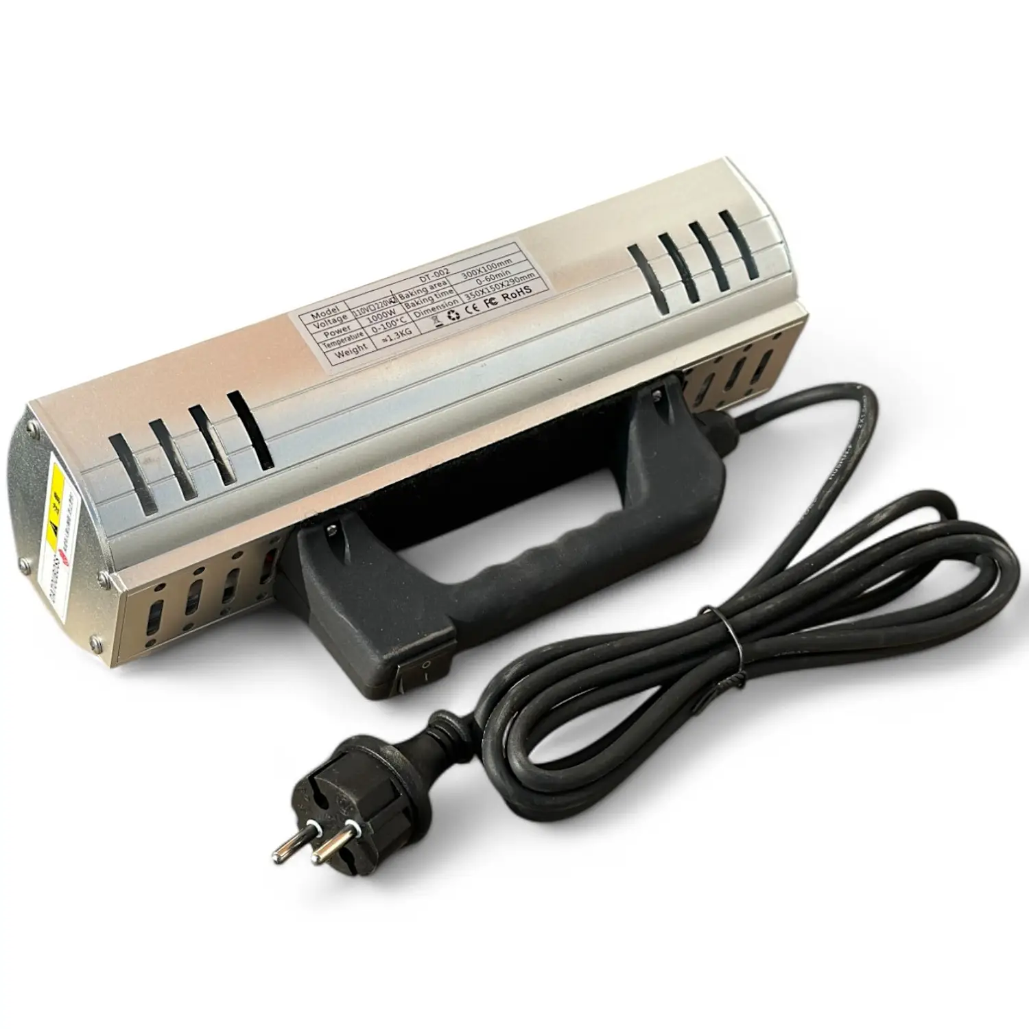 - Регулируемое рабочее расстояние между нагревательным элементом и поверхностью (450-650 мм), что повышает эффективность и безопасность процесса.