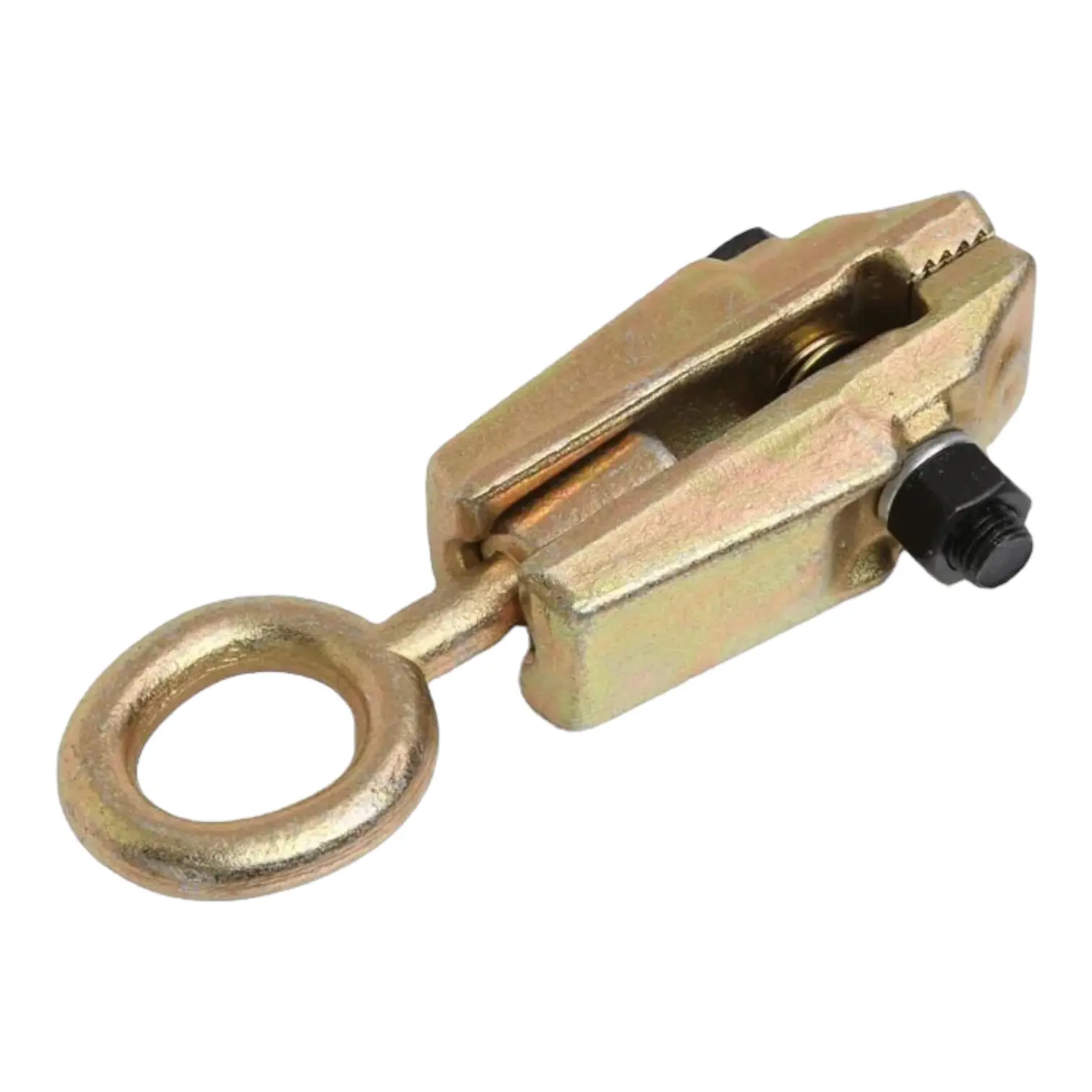 Двухсторонняя металлическая пряжка. Позволяет одновременно натягивать кузов автомобиля в двух направлениях. Зубчатые челюсти повышают уверенность в захвате листового металла.