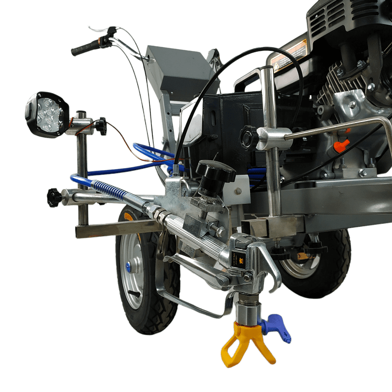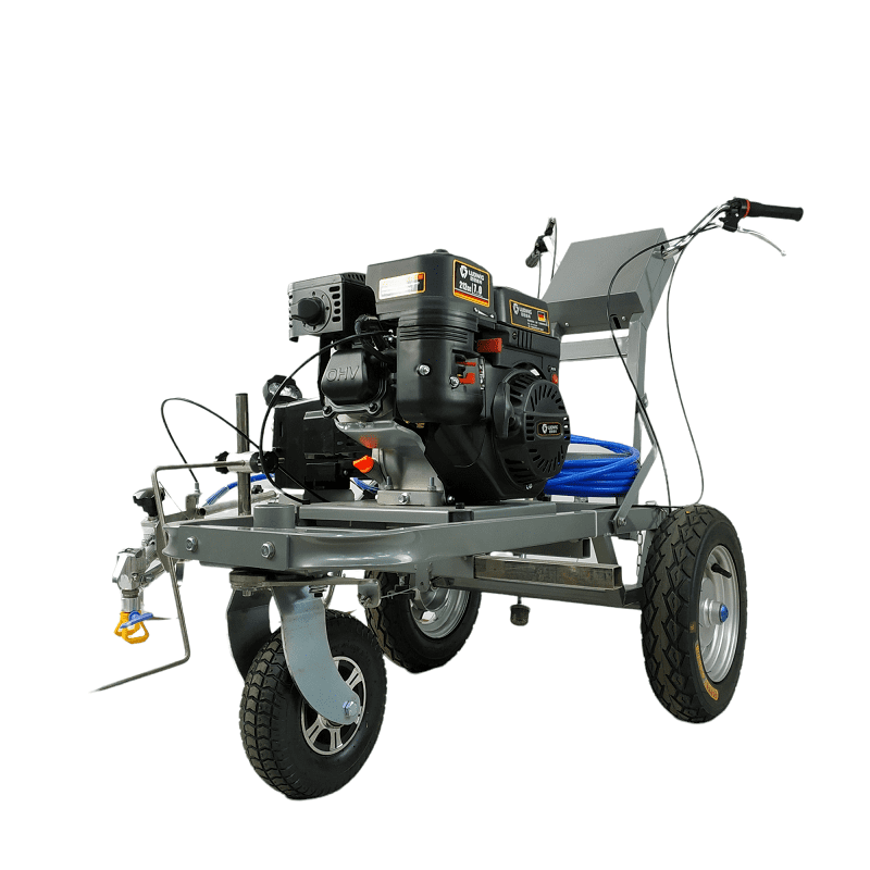 Она разработана специально для разметки парковок, складских помещений, разных дорог, тротуаров, спортивных площадок, футбольных полей и подобных территорий. При этом используется метод безвоздушного напыления.