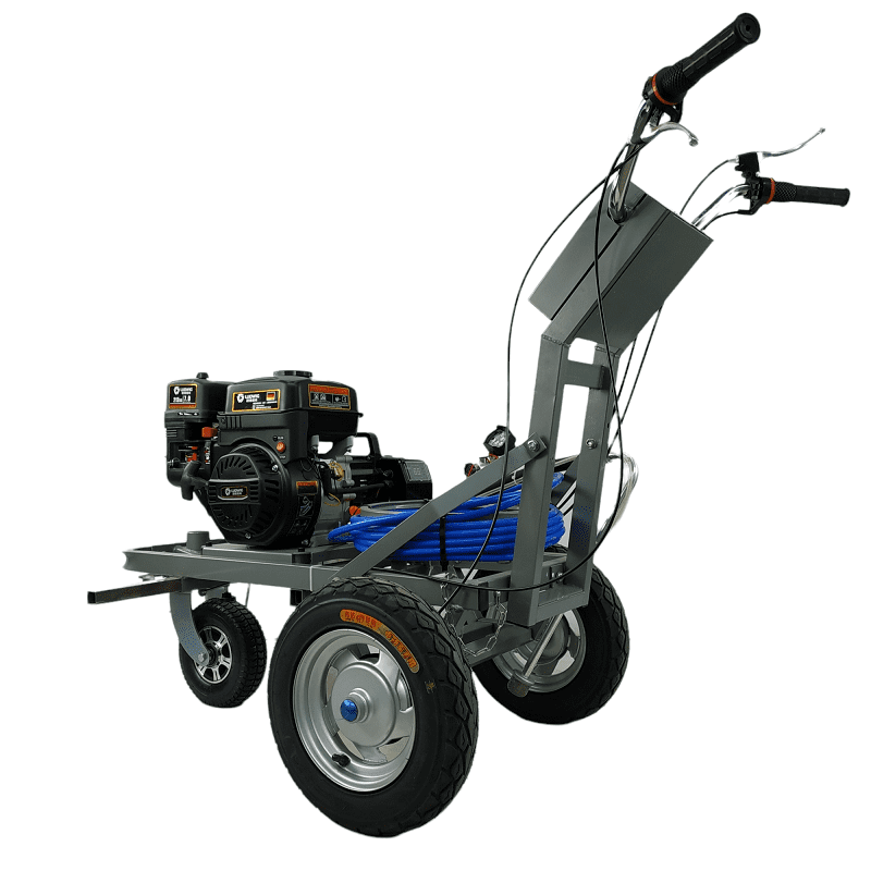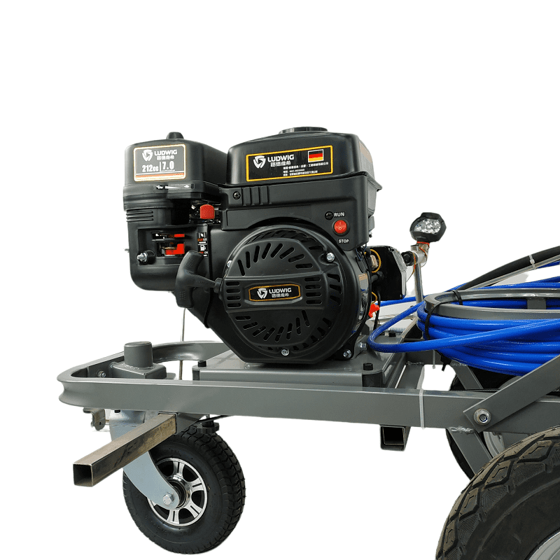 - поршневой насос для краски с бензиновым двигателем на колесной тележке;