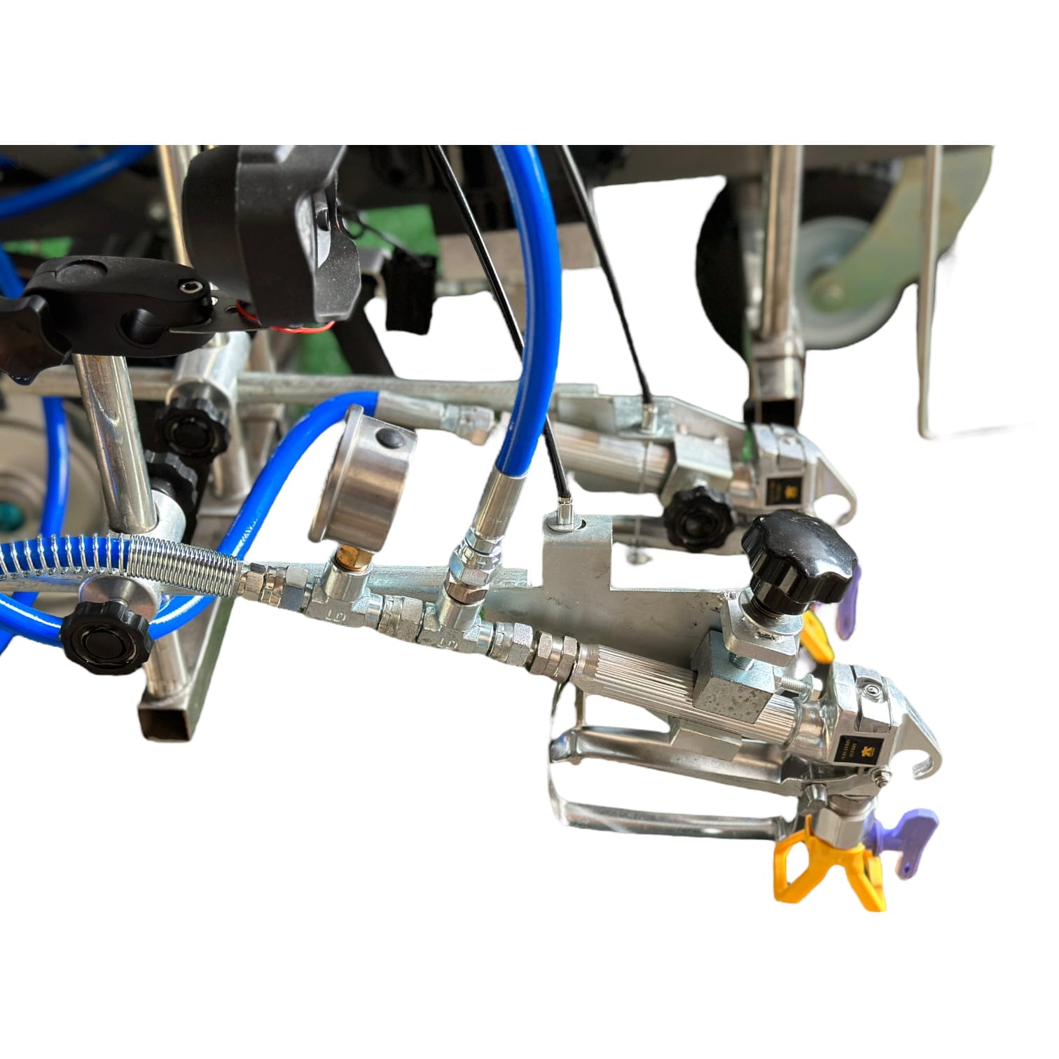 Пистолеты можно устанавливать спереди или сзади машины: как слева, так и справа. Пистолеты позволяют оператору наносить одну линию (сплошная/прерывистая) или одновременно две линии (сплошные/прерывистые) или одновременно двумя пистолетами одну широкую линию (до 60 см сплошная/прерывистая).