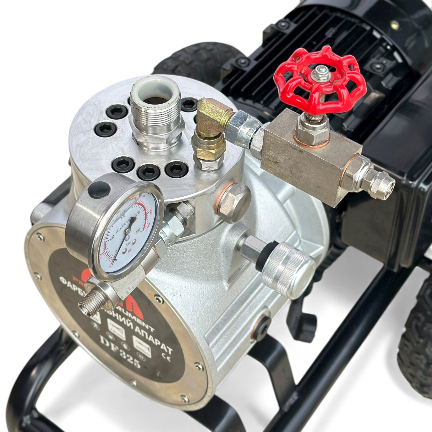 Конструкция основных клапанов: перепускной, впитывающий, нагнетательный клапан, регулятор давления, основанный на новых наработках, и имеющий более высокий ресурс износостойкости, что в совокупности с большой производительностью DF-325 и его невысокой ценой в своем классе – делает одним из лучших агрегатов в выборе из оборудования для окрашивания всерьез и надолго. Покупая этот покрасочный аппарат, вы будете уверены, что работа у вас не остановится, и вы в срок закончите окрасочные работы у заказчика на объекте .
