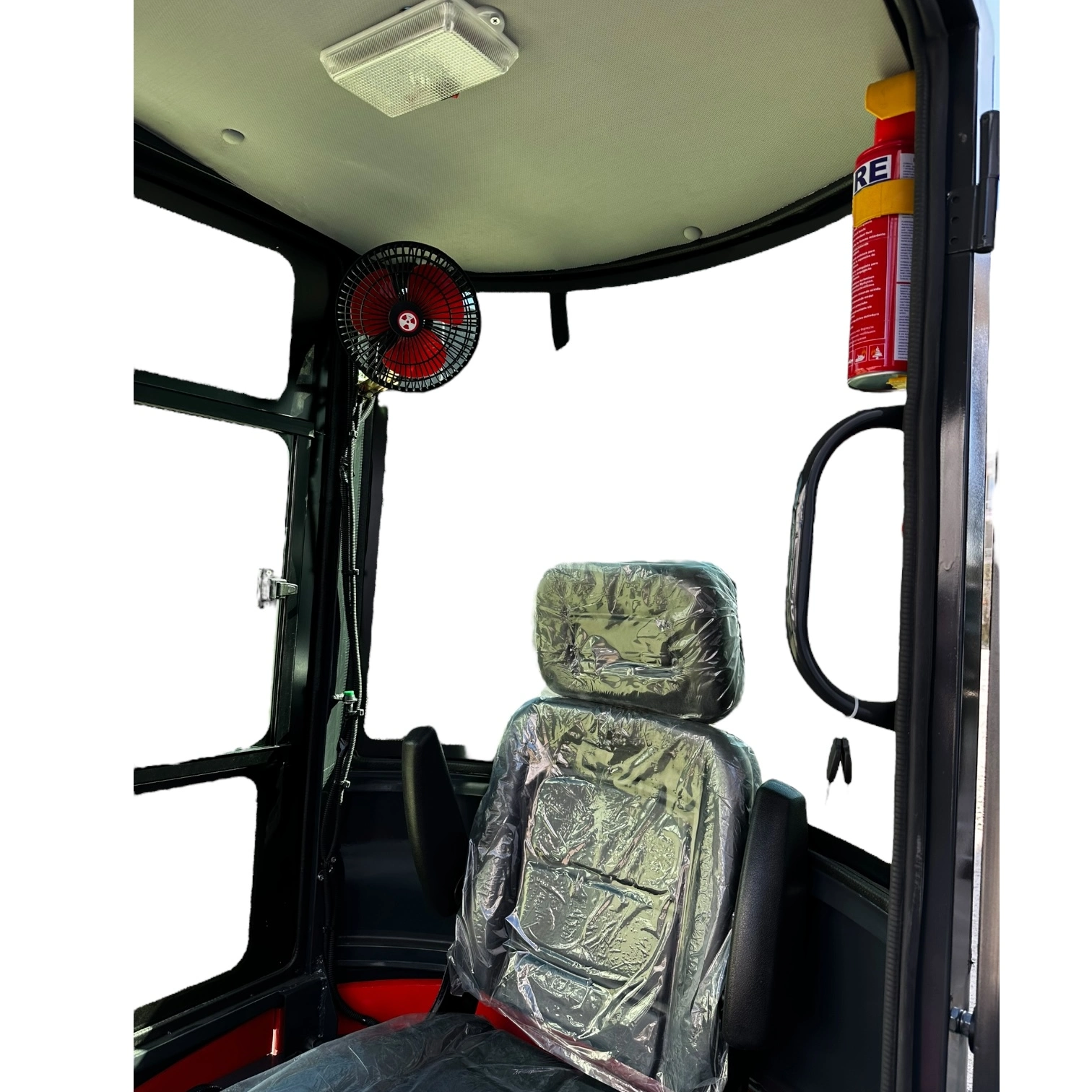 Мини-экскаватор оснащен кабиной и поворотной стрелой, что обеспечивает удобство и точность выполнения задач.