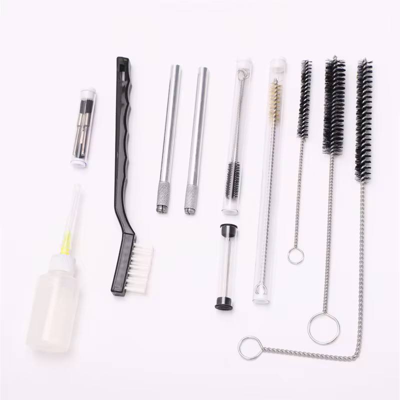 Инструменты для очистки краскопульта Profinstrument – это полный комплект инструментов по уходу и очистке краскораспылителей, который поможет поддерживать оборудование в отличном состоянии. Благодаря разным типам щеток и тонким иглам вы сможете легко удалить остатки краски, пыль и другие накапливающиеся в соплах, каналах и форсунках загрязнения.