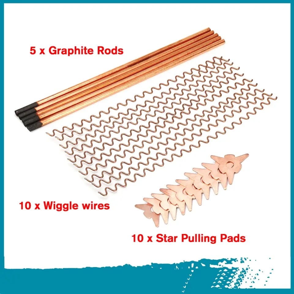 Набор предназначен для работы со споттерами и содержит все необходимые расходные материалы и электроды для повседневной работы с кузовом автомобиля. Подходит для прямой вытяжки вмятин и точечной сварки.