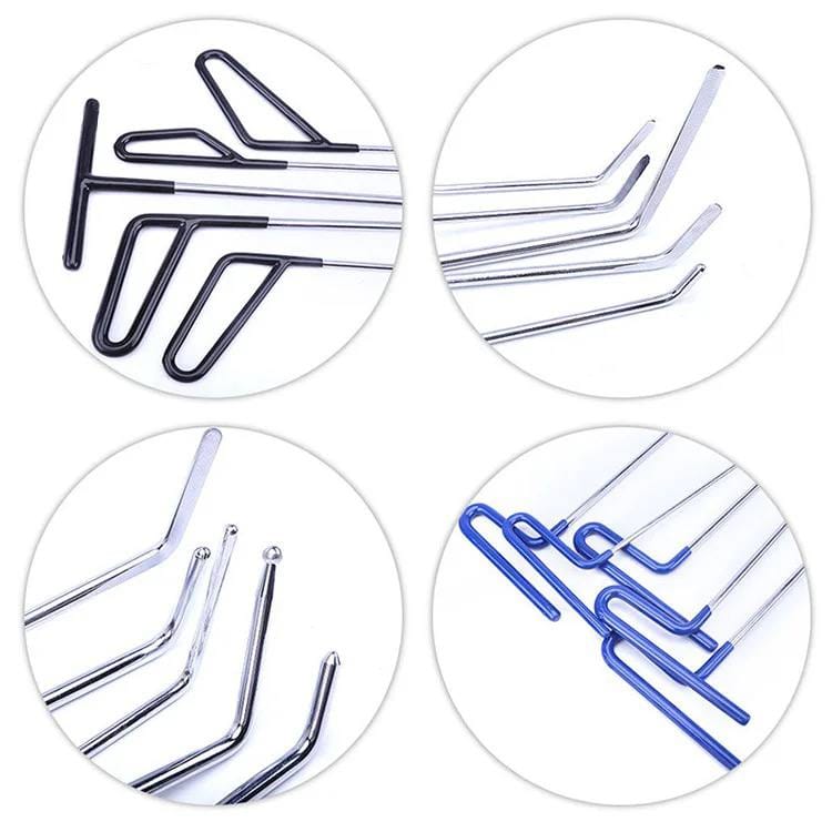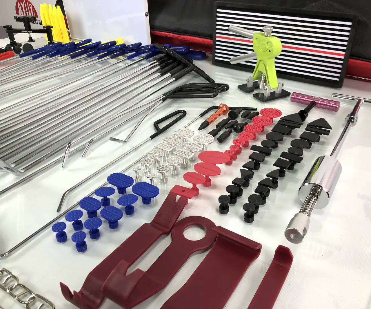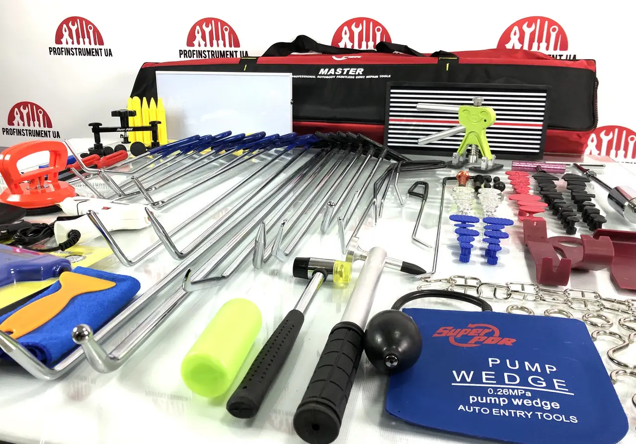 Набор для рихтовки автомобиля является идеальным решением для удаления вмятин без покраски (PDR – Paintless Dent Repair). Он содержит широкий выбор профессиональных инструментов, подходящих для вмятин разного размера.