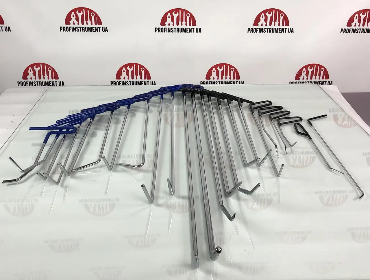 Инструменты для устранения вмятин изготовлены из пружинной высококачественной стали, которая подвергается двухступенчатой термообработке. Это обеспечивает им необходимые свойства: они склонны к изгибу и вращению во время работы, но не ломаются и возвращаются в исходную форму без повреждений.