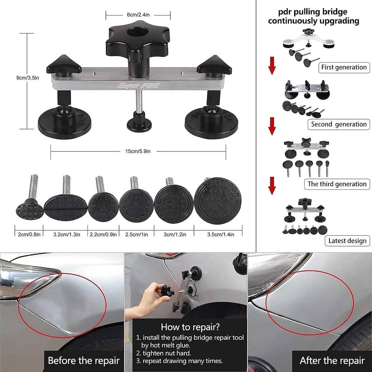 Набор для удаления вмятин без покраски PDR QK0135 – профессиональный инструмент для быстрого, точного и безопасного ремонта кузова автомобиля без повреждения лакокрасочного покрытия. Этот комплект специально разработан для рихтовки без покраски, что позволяет избежать использования шпаклевки, грунтовки или повторной покраски, сохраняя заводское покрытие кузова. Набор идеально подходит для удаления вмятин без покраски автомобиля, и подходит для работы с любыми металлическими панелями, такими как двери, капот, крылья, багажник. Инструменты для быстрого ремонта вмятин обеспечивают точное восстановление формы без риска повреждения поверхности.