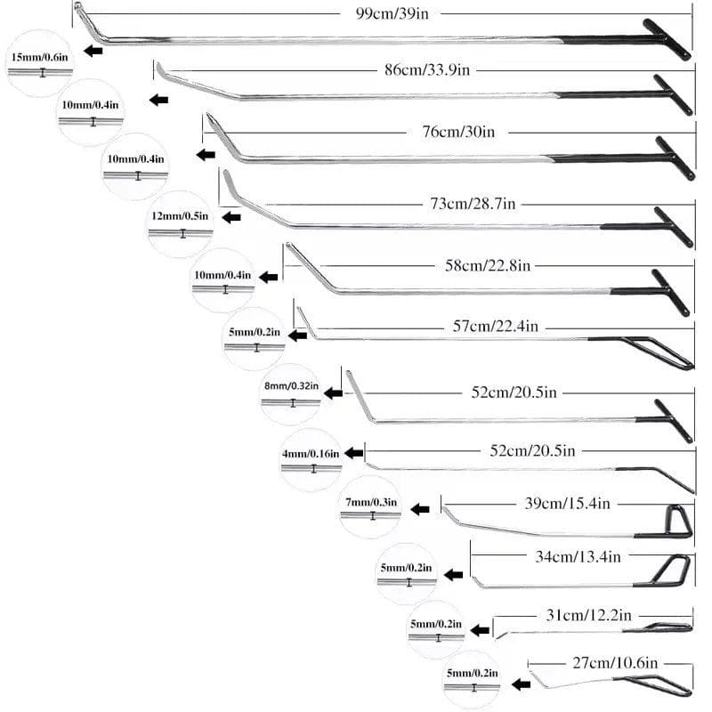 Этот комплект – идеальный выбор для рихтовщиков, которые ценят качество и скорость работы. Высококачественные инструменты для ремонта вмятин подходят как для профессиональных автомастерских, так и для личного использования.