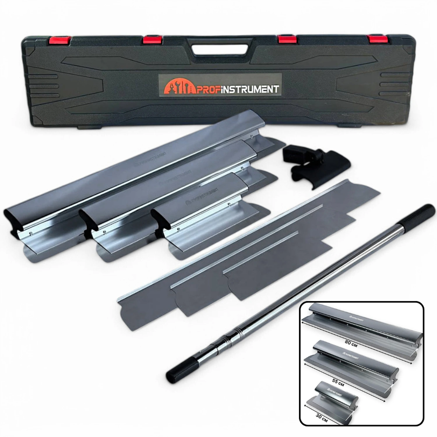 Profinstrument PUTTI KIT 3 – это полноценный набор механических шпателей с телескопической ручкой и сменными лезвиями, созданный специально для специалистов по малярным и штукатурным работам. Все удобно собрано в крепком кейсе — готово к работе где угодно и в любое время.