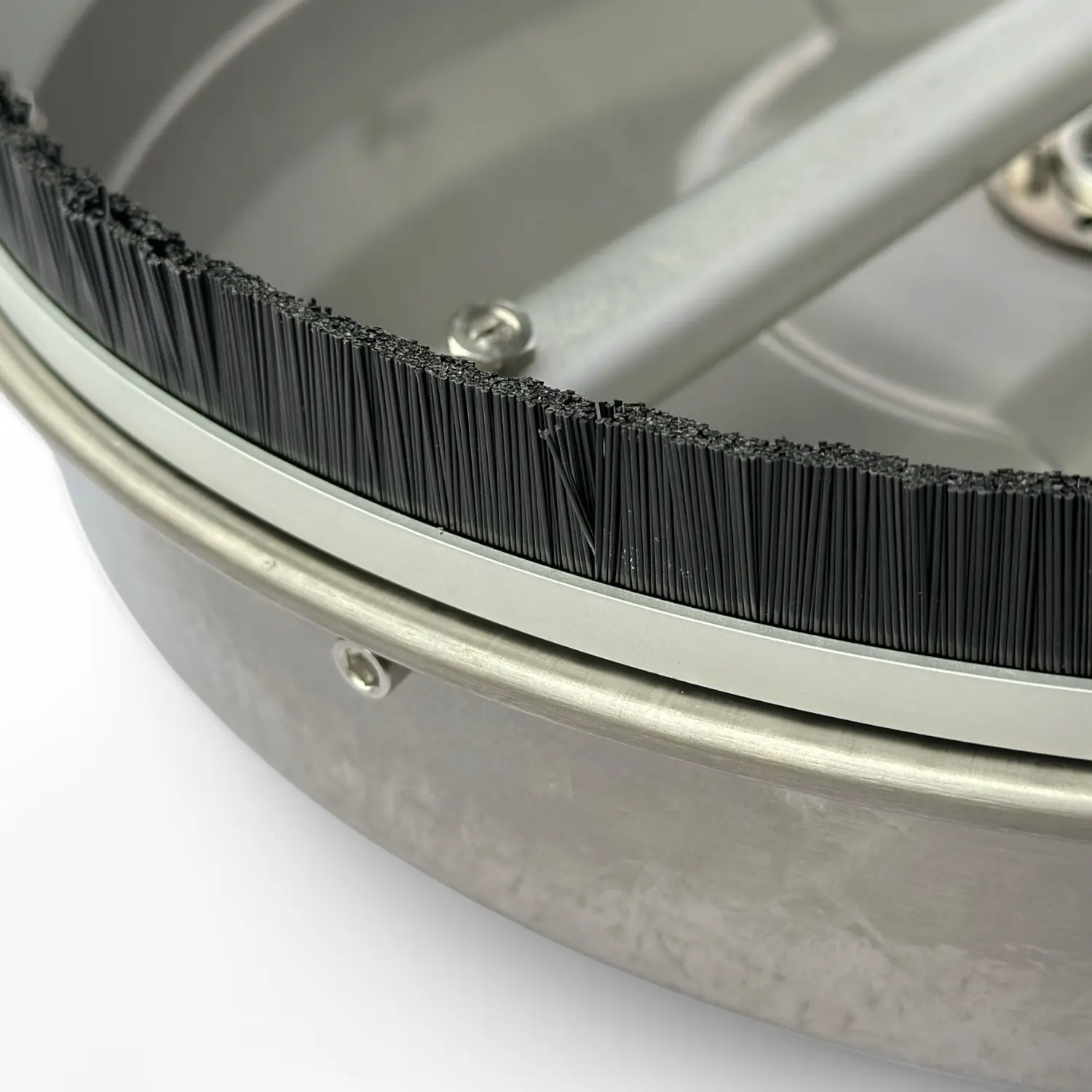 Щетка изготовлена из прочной нержавеющей стали , устойчивой к коррозии и ржавчине. Оснащена вращающимися распылительными форсунками (штанга с двумя насадками и углом распыления 25°) для широкого покрытия, а щетки предотвращают разбрызгивание. Четыре вращающихся резиновых колеса обеспечивают плавное движение по горизонтальным поверхностям. Очистка дает видимый контраст до и после использования, обеспечивая чистую среду. Простота использования – соединение с устройством через быстродействующие соединители, подходит для холодной и горячей воды. Идеально подходит для очистки плитки, брусчатки, дорожек, подъездов, парковок и других плоских поверхностей .
