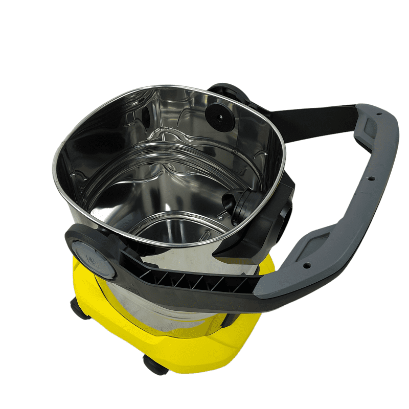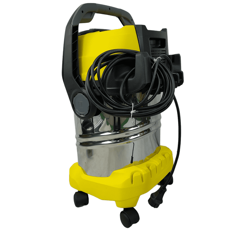 Обладает металлическим контейнером емкостью 30 л, что позволяет собирать большой объем жидкости или мусора и гарантирует дополнительную прочность.