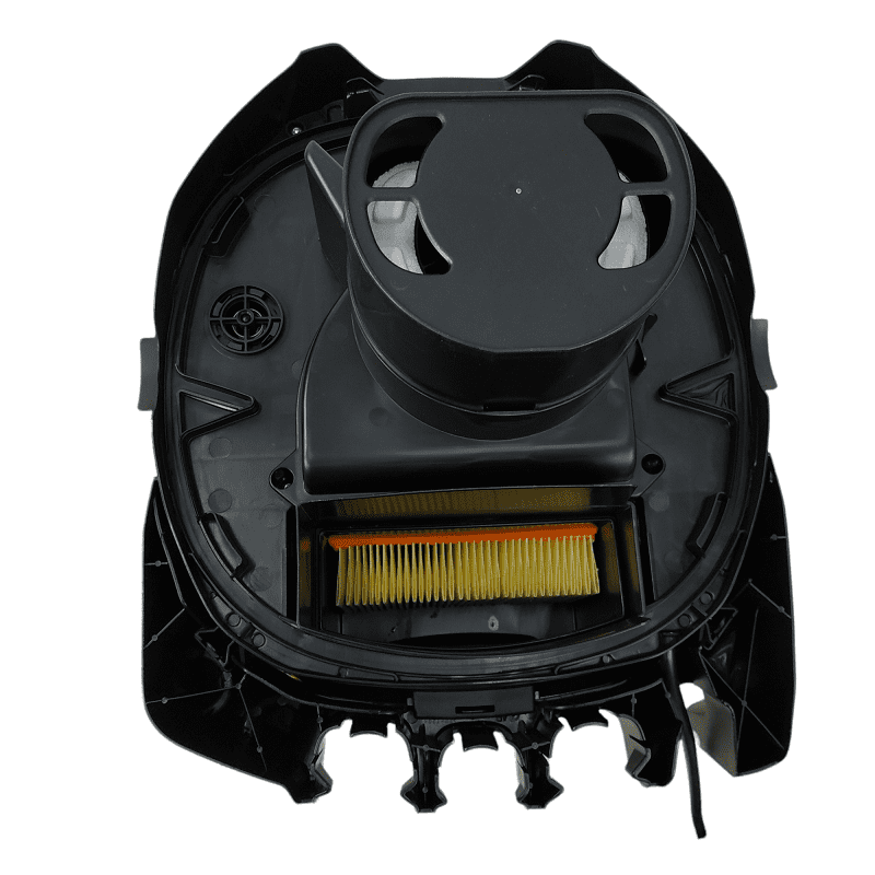 Удобная конструкция системы фильтрации позволяет снять и отрусить фильтр без малейшего прикосновения к нему руками: кассетник с фильтром расположен снаружи и легко снимается одной рукой (не нужно открывать крышку пылесоса и доставать фильтр изнутри после работы).