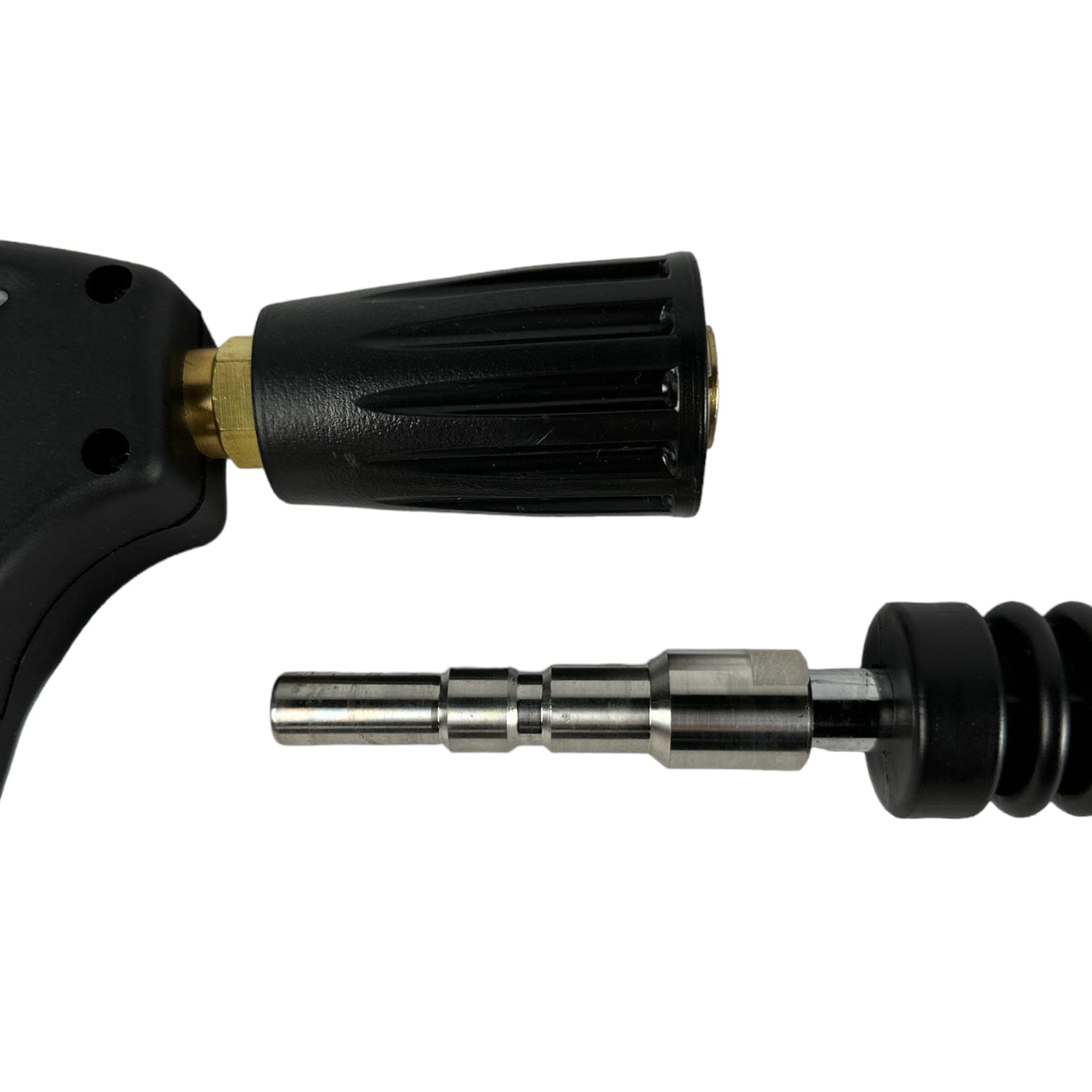 Быстросъемное соединение позволяет быстро снимать и устанавливать пик высокого давления и пенную насадку с моющим средством.