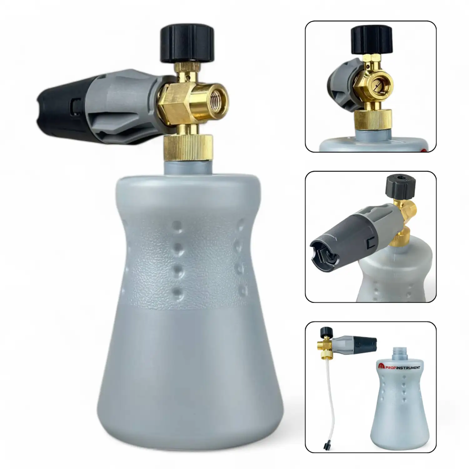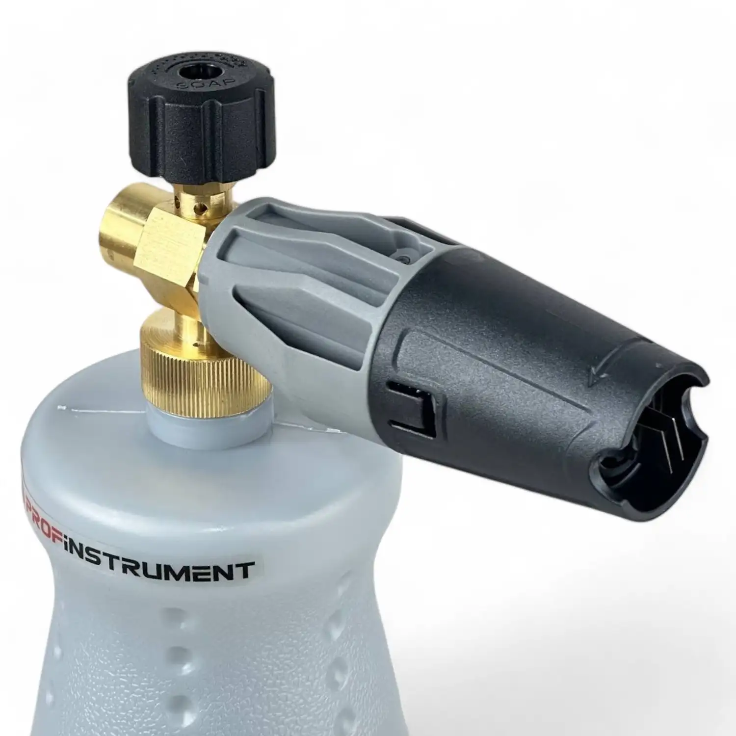 Profinstrument – это высококачественная пенная насадка, разработанная для эффективной и удобной бесконтактной мойки автомобилей, мотоциклов, спецтехники и других поверхностей. Она сочетает в себе надежность, функциональность и простоту использования.