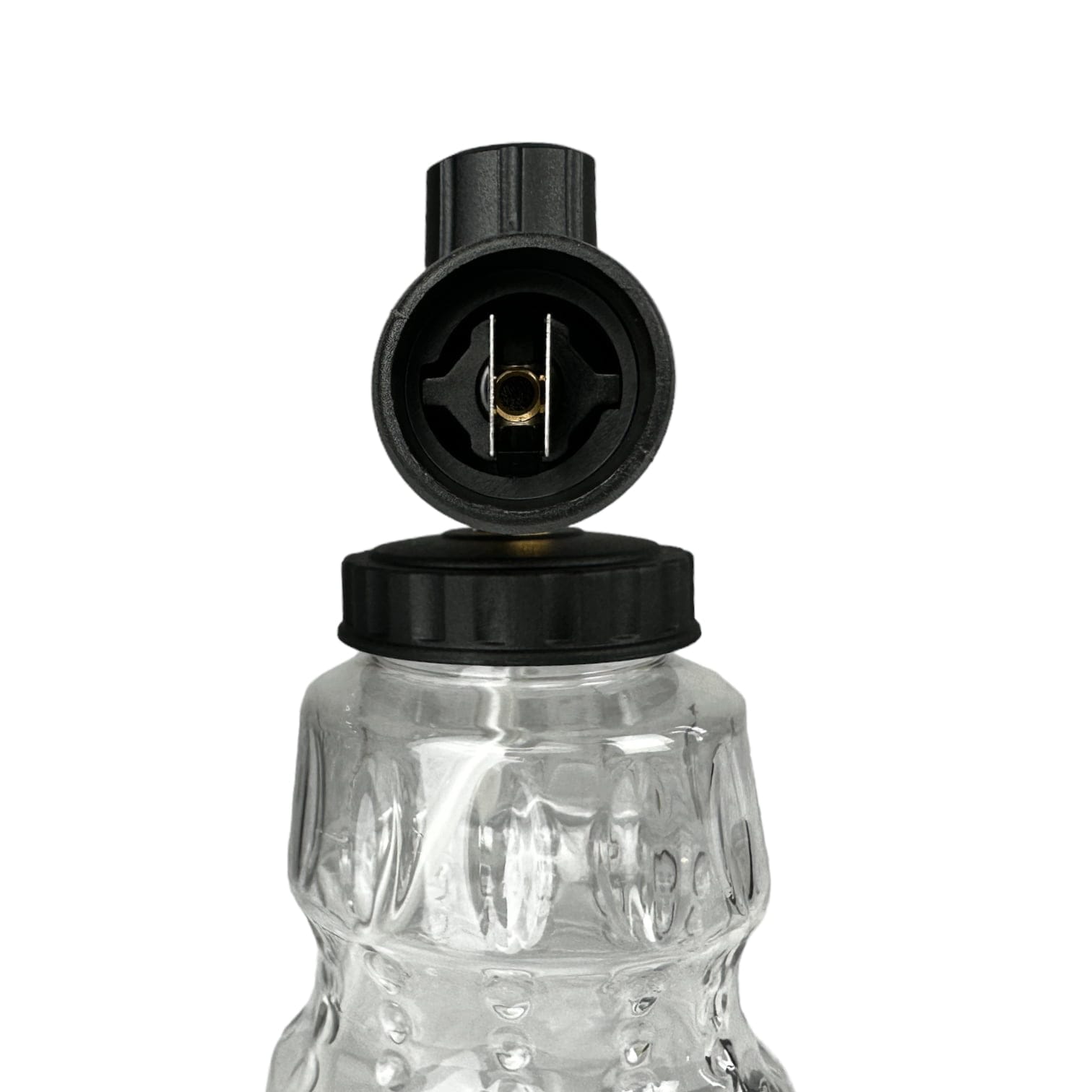 - Регулирующая ручка сверху позволяет регулировать соотношение воды и моющего средства, что позволяет увеличивать или уменьшать толщину распыляемой пены.