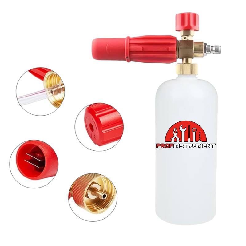 Пенная насадка Profinstrument Q3 специально разработана для создания суперплотной пены, смешивая моющее средство и воду с помощью мойки высокого давления. Благодаря нашему собственному дизайну – основа из металла, она создает и распиливает невероятно толстую и плотную пену на ваш автомобиль, мотоцикл, пол, тротуар, крышу или другие моющиеся предметы.