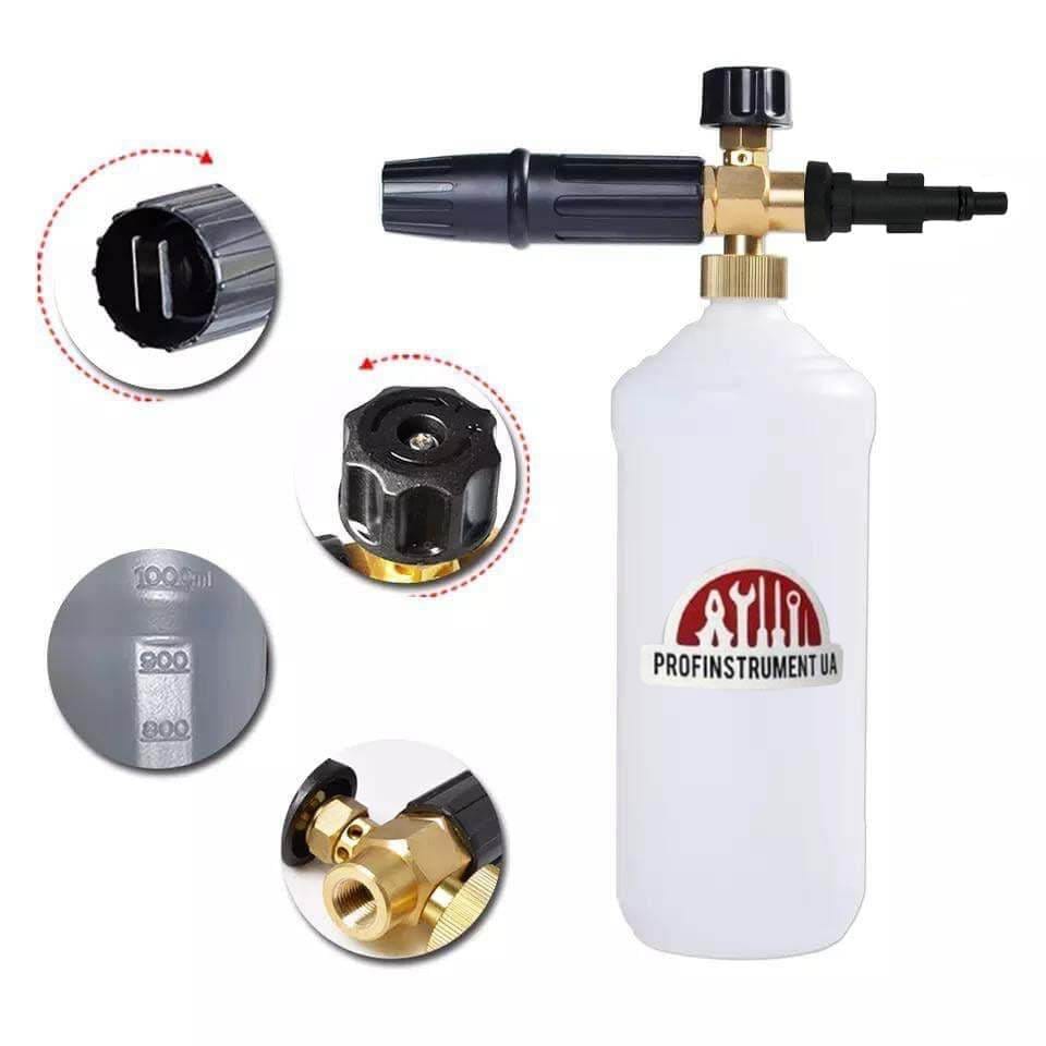 Пенная насадка Profinstrument Q4 специально разработана для создания суперплотной пены, смешивая моющее средство и воду с помощью мойки высокого давления. Благодаря нашему собственному дизайну – основа из металла, она создает и распиливает невероятно толстую и плотную пену на ваш автомобиль, мотоцикл, пол, тротуар, крышу или другие моющиеся предметы.