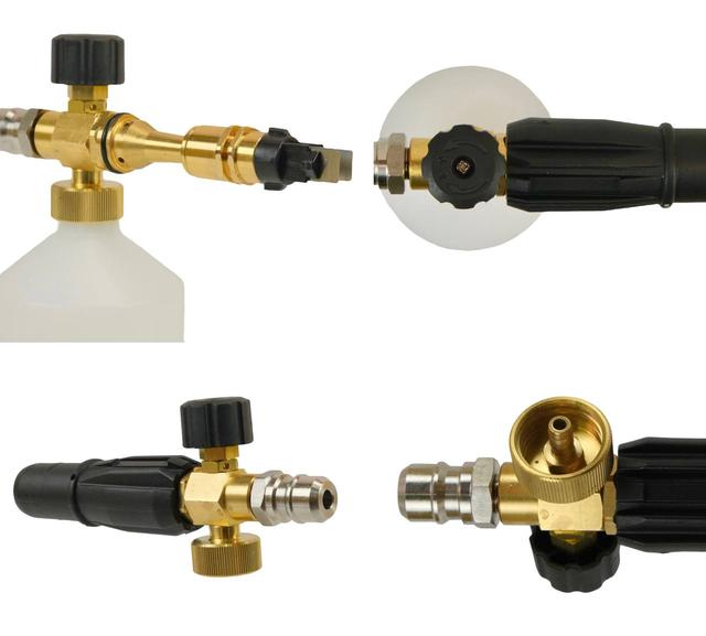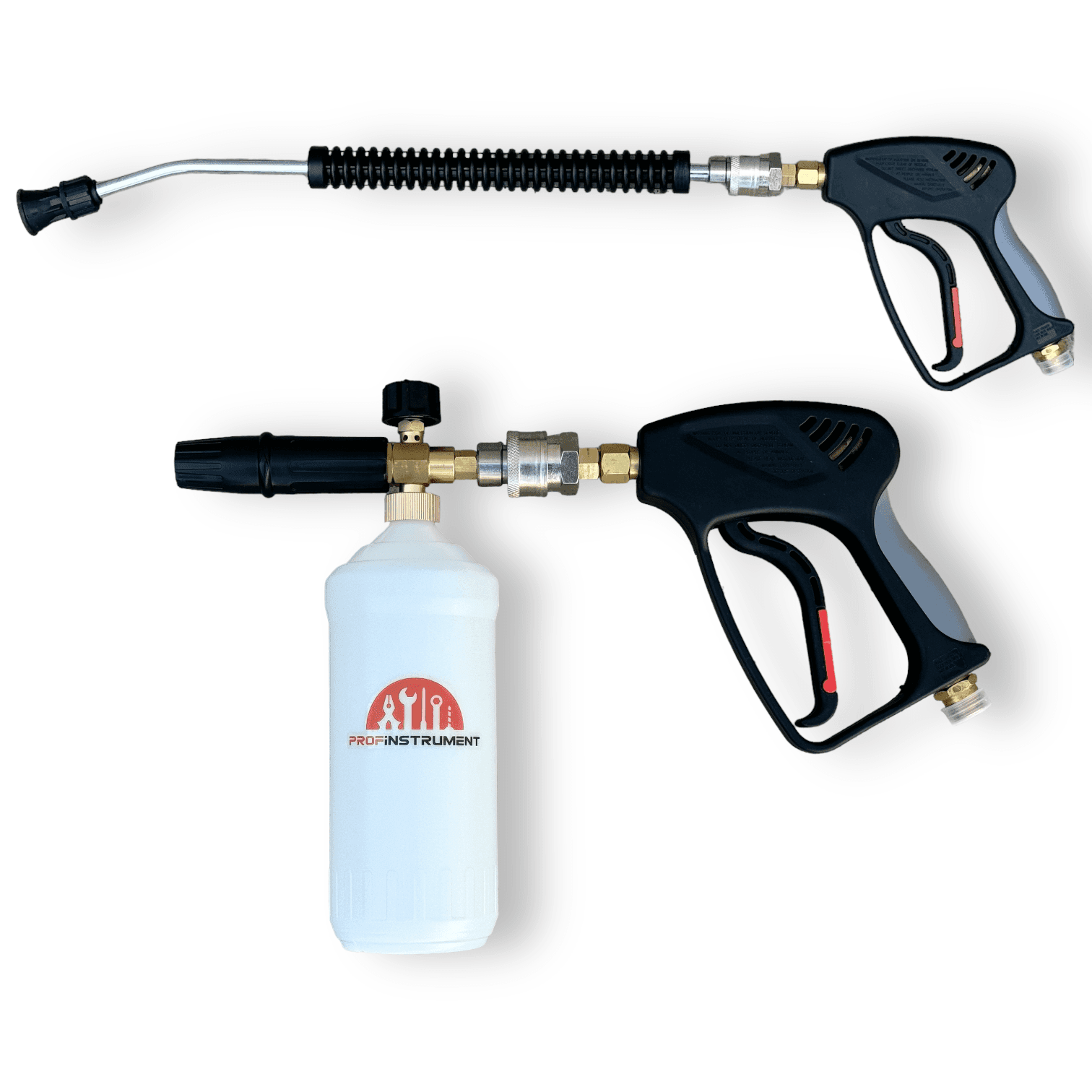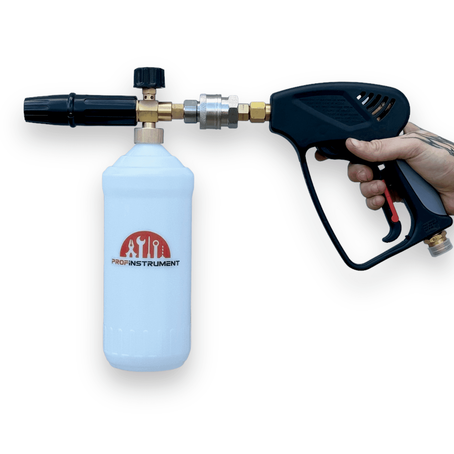 Пенокомплект Profinstrument – универсальный пенный комплект используется для бесконтактной мойки автомобилей. Пенный комплект обеспечивает нанесение активной пены на поверхность автомобиля и быстрое изменение насадок для смыва водой.