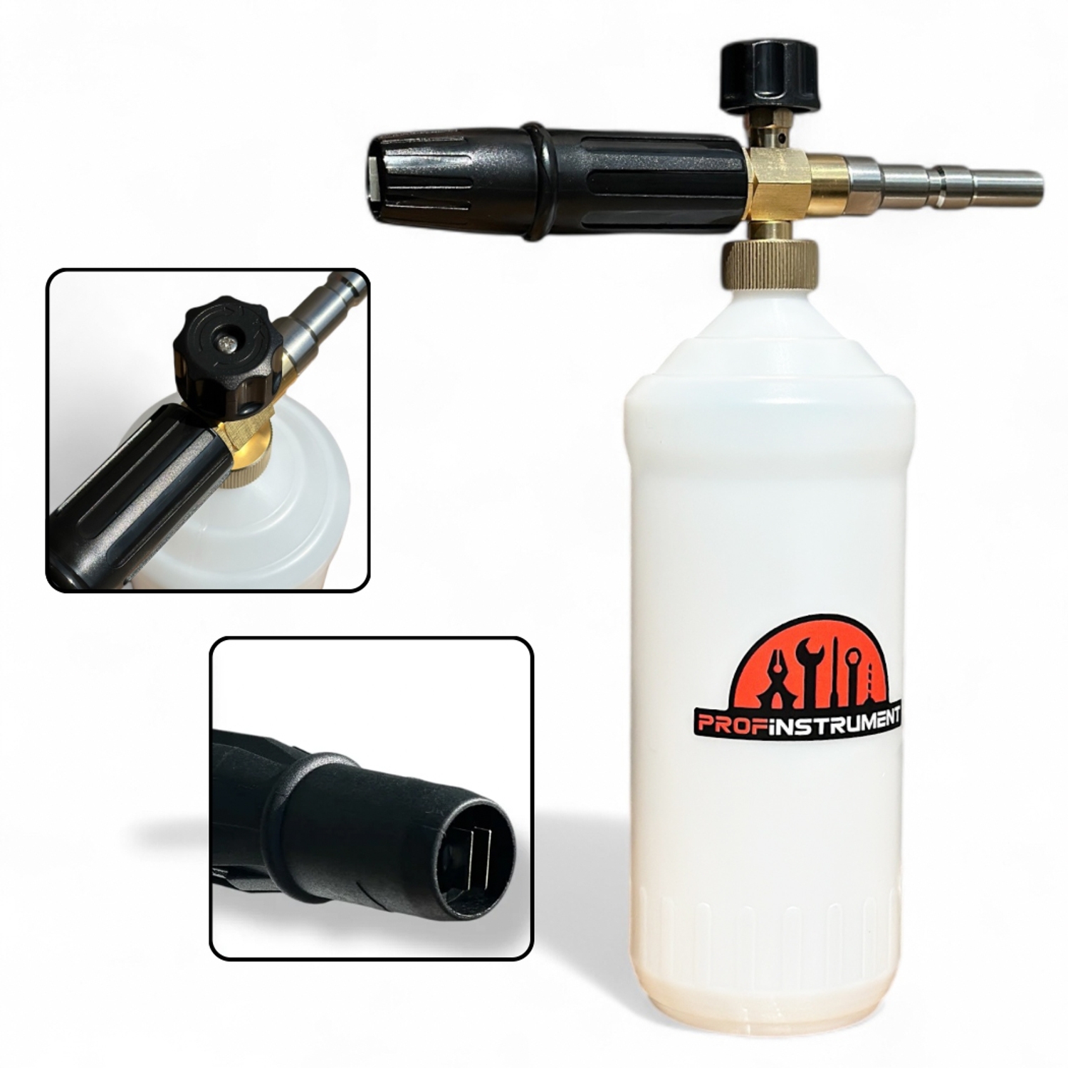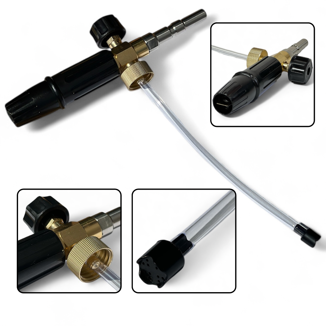 Пенокомплект позволяет легко переключаться между подачей активной пены и смыванием водой благодаря быстросъемным соединениям. Это экономит время, снижает расход химии и обеспечивает более глубокую очистку без повреждения лакокрасочного покрытия.