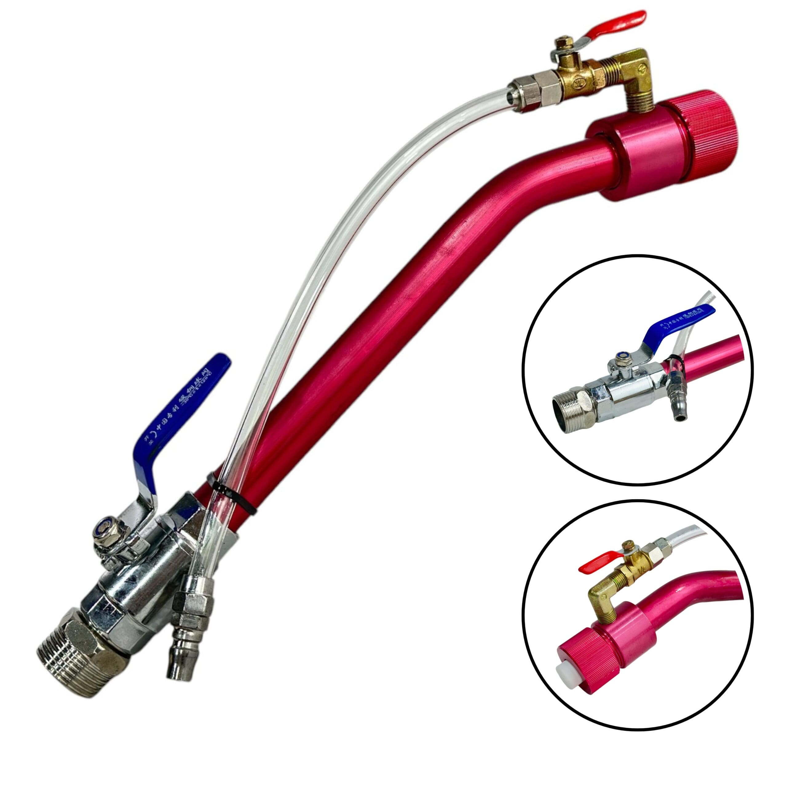 Оснащен шаровым краном и линией подключения воздухом, что обеспечивает легкую адаптацию к разным условиям и материалам. Благодаря своей гибкости он идеально подходит для строительных работ, а также для выполнения различных задач в промышленности и быту.