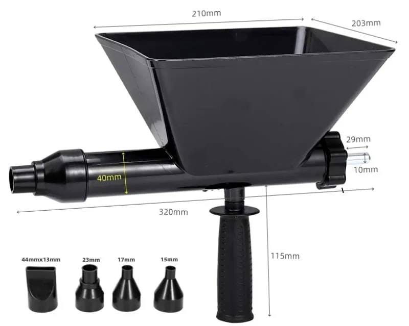 Пистолет для цементного раствора сверлом диаметром 8 мм – это высокоэффективный инструмент, предназначенный для точного и быстрого нанесения цементного раствора на различные поверхности, включая каменные стены, швы и полы. Благодаря его конструкции раствор равномерно распределяется, что обеспечивает надежное прилегание и высокое качество финишной обработки.