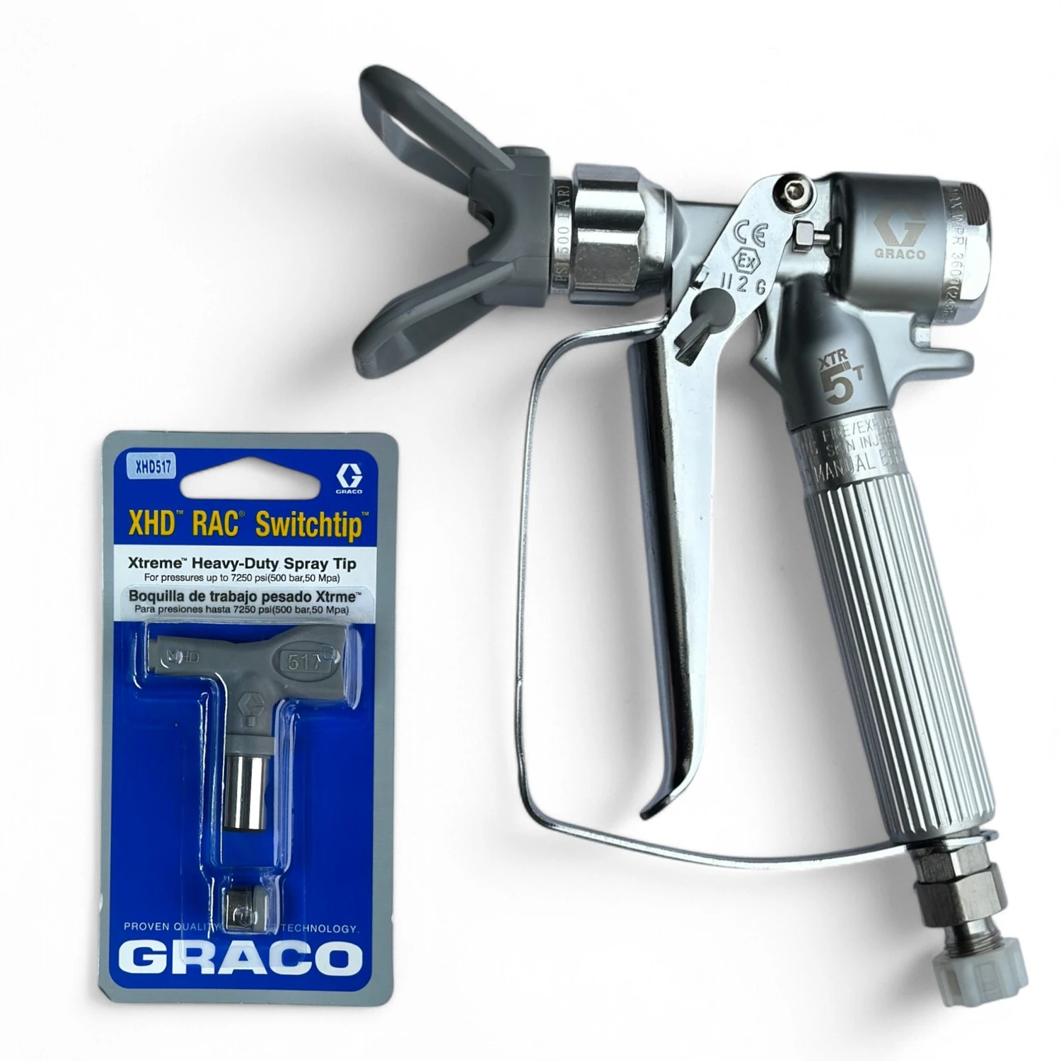 GRACO XTR 5+ – это флагманский высокодающий безвоздушный окрасочный пистолет, специально разработанный для профессионального нанесения антикоррозионных покрытий. Благодаря максимальному рабочему давлению 345 бар (5000 psi), этот пистолет совместим со всеми покрасочными агрегатами, доступными на рынке.