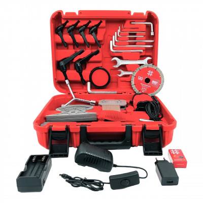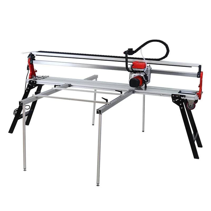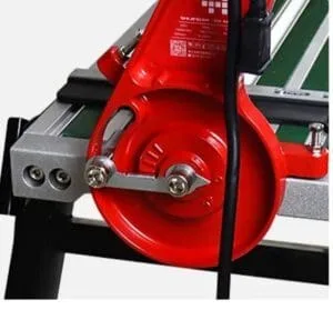 Благодаря складной конструкции станок не доставляет сложностей в транспортировке и хранении. Из транспортного состояния в рабочее – собирается за 5 минут. Также предусмотрены колесики для удобного передвижения с места на место. Плиткорез обладает высоким качеством сборки, материалов и комплектующих. Рама изготовлена из профилированного алюминия с нержавеющими болтами и не подвергается коррозии от попадания воды. Система водяного охлаждения предотвращает перегрев пыльцевого диска, а также способствует работе без пыли. Специальный кожух защищает работника от вылета мелких частиц при проведении работ.