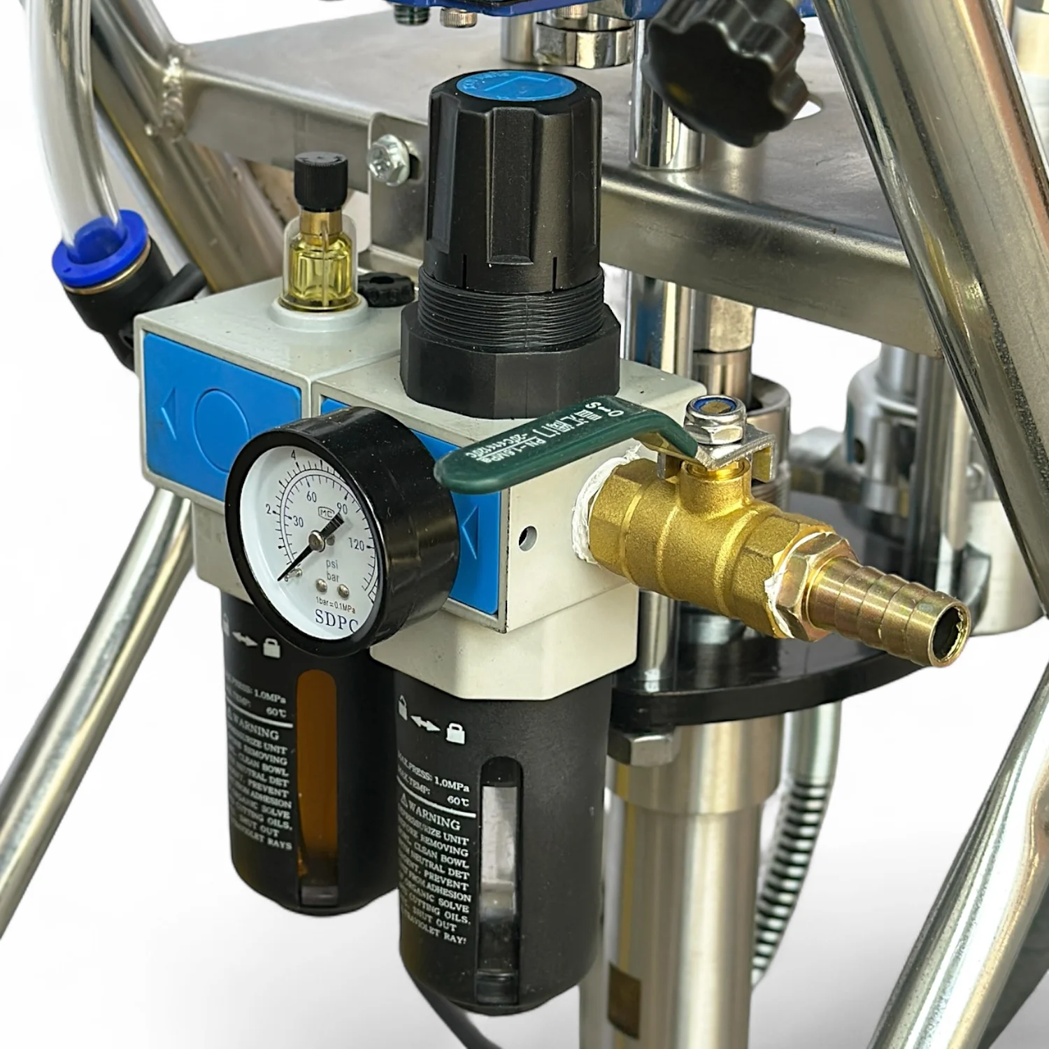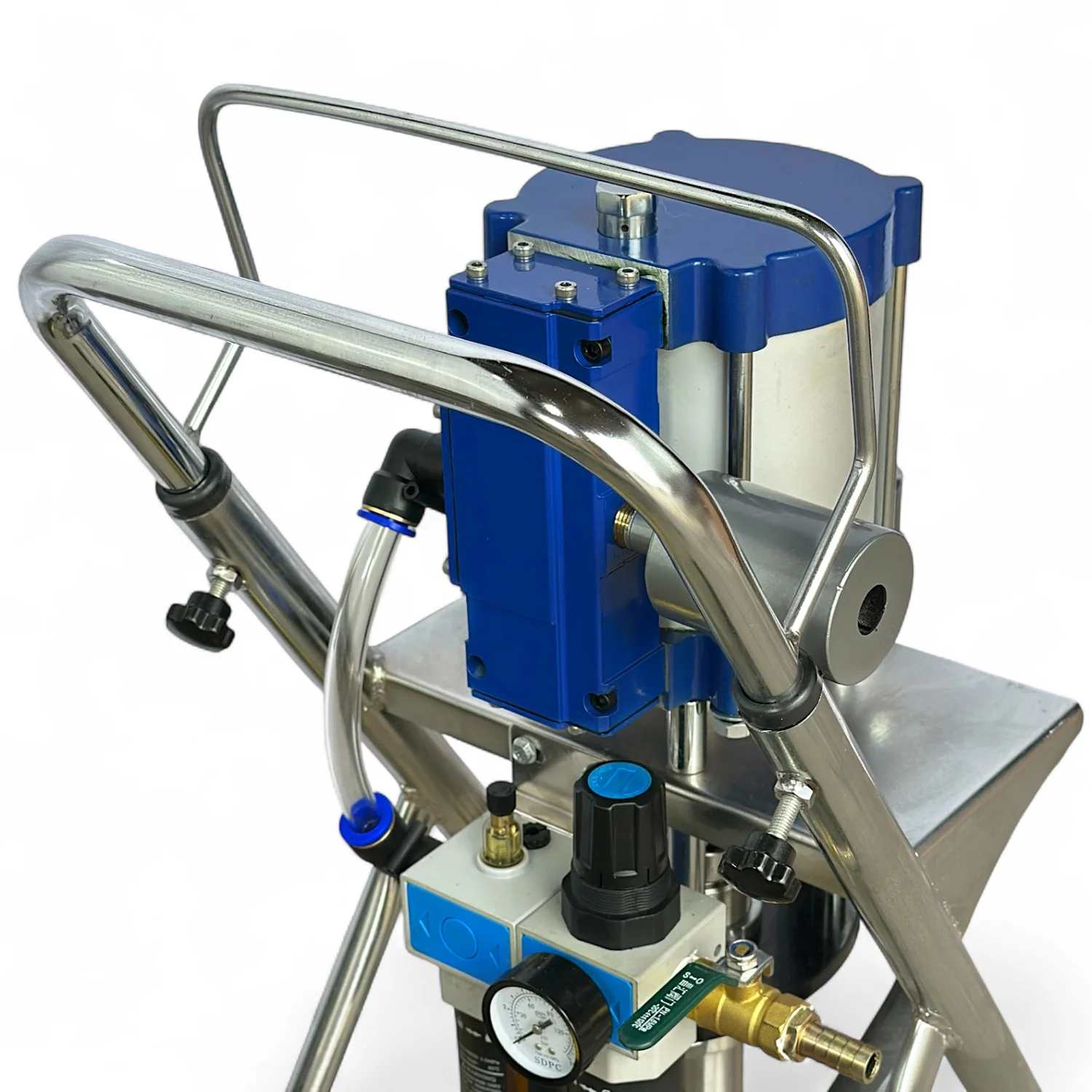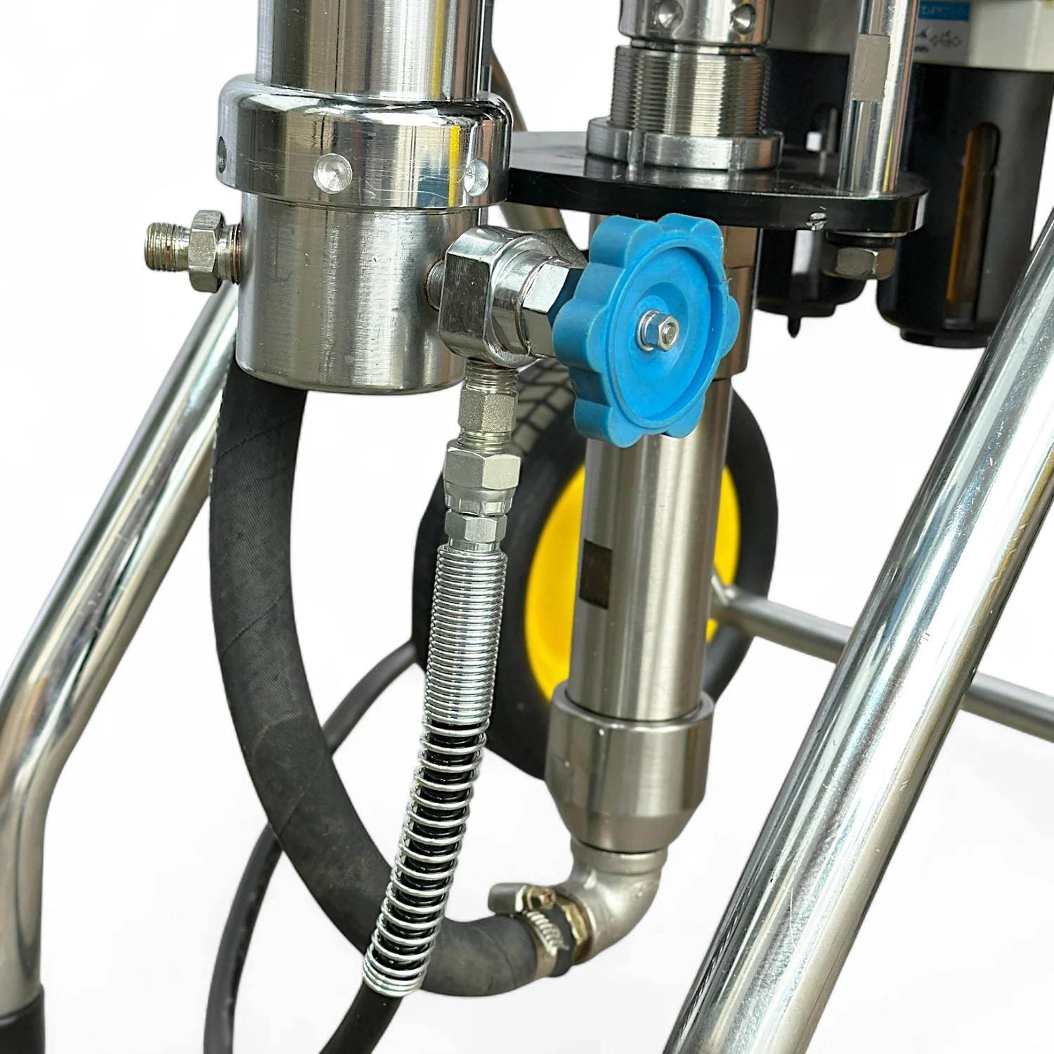 Все элементы насоса изготовлены из высококачественной нержавеющей стали, позволяющей работать с красками на водной и масляной основе.