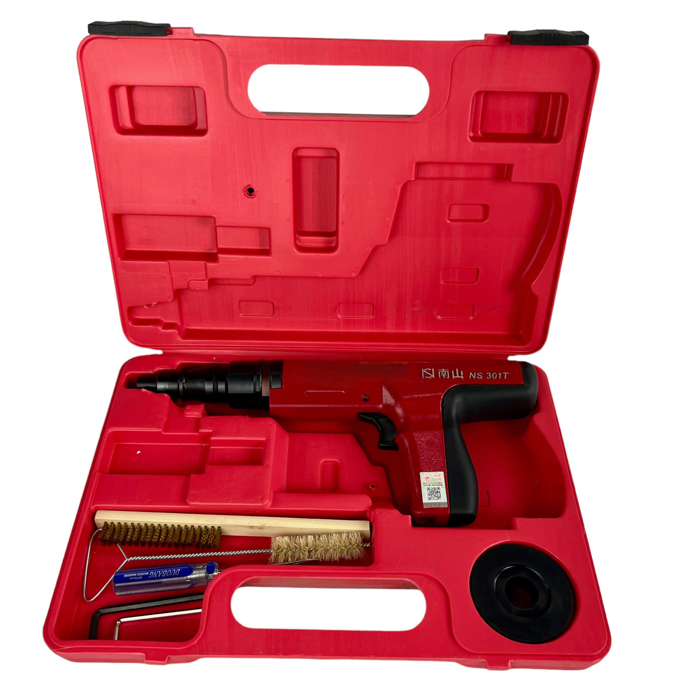 Многозарядный монтажный пистолет NS 301T – инструмент, используемый для монтажа пристрелочных элементов. Может работать с особо крепкими поверхностями – бетоном, сталью, а также другими материалами, которые используются при монтаже различных конструкций. Инструмент гарантирует быстрое и надежное исполнение своей функции
