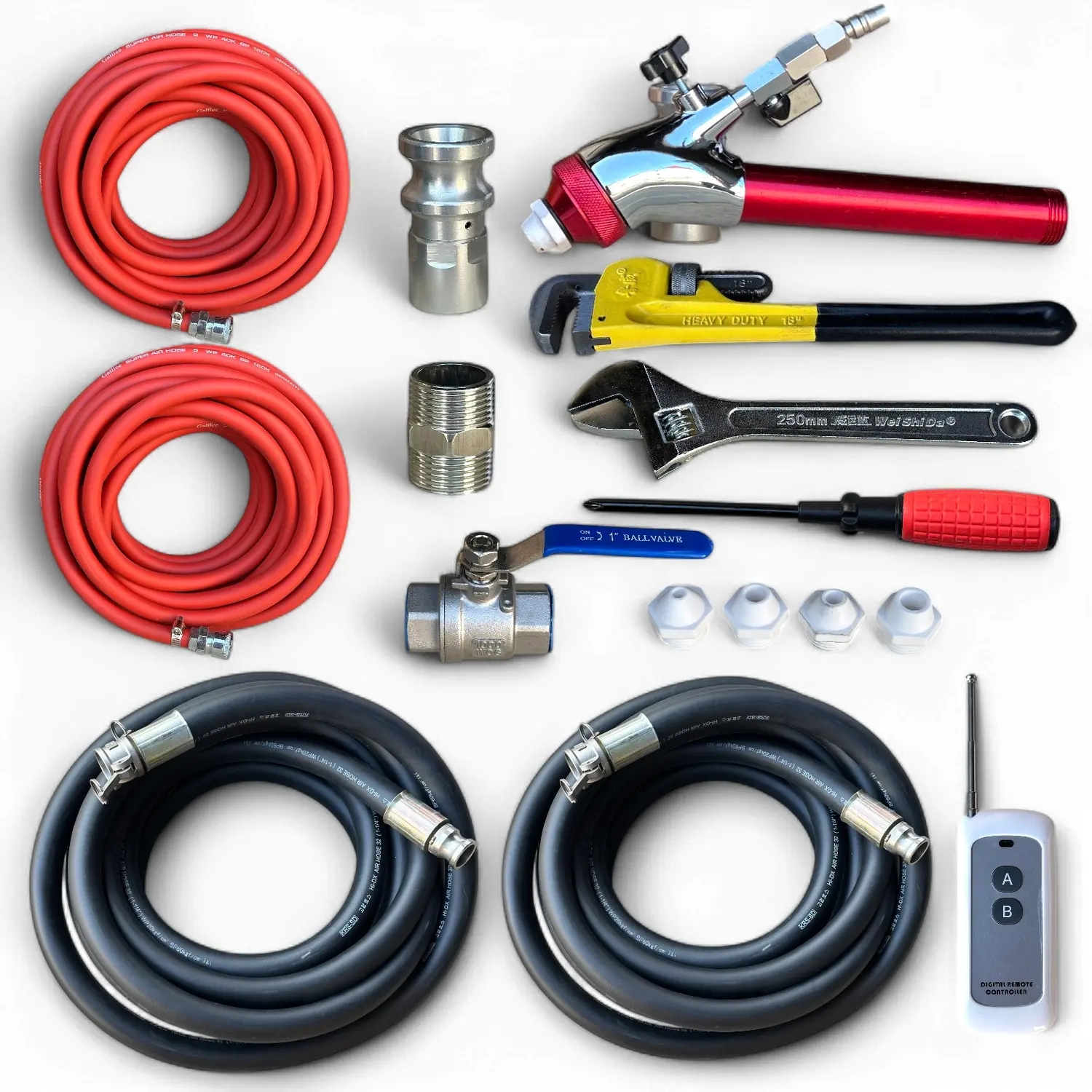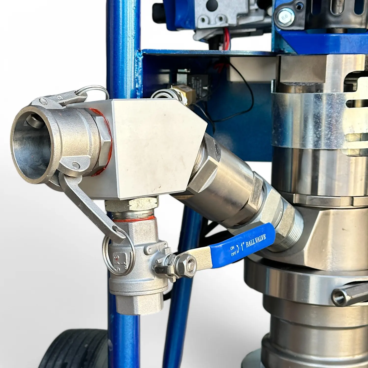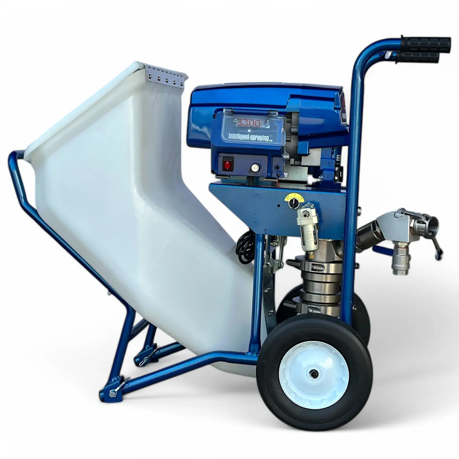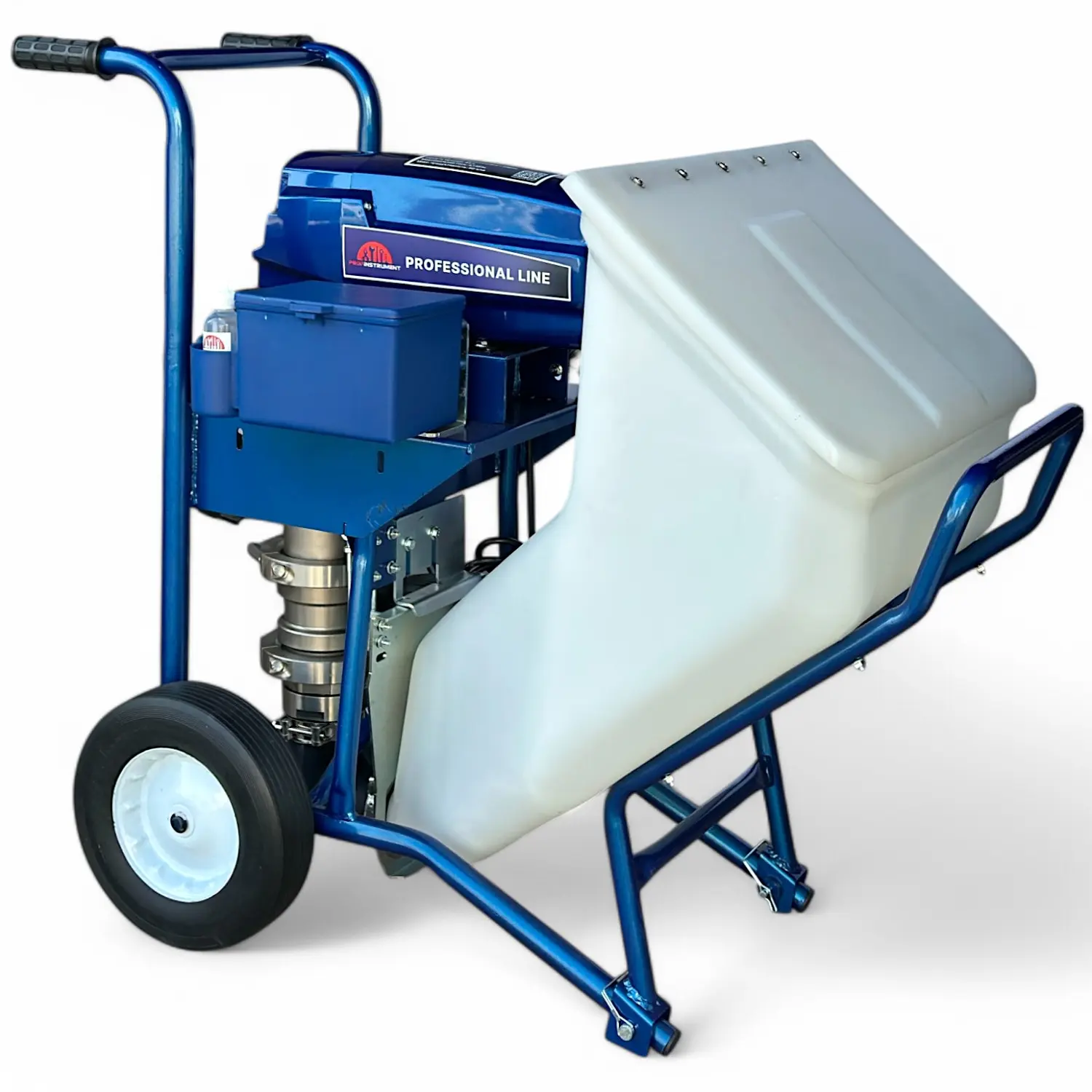 - Высокая производительность: Насос способен работать с большим количеством материала, обеспечивая распыление до 100 мешков в день и создавая высокое давление до 41 бар (600 psi). Это позволяет эффективно работать даже на расстоянии до 46 метров (150 футов) от агрегата, что особенно важно для больших объектов.