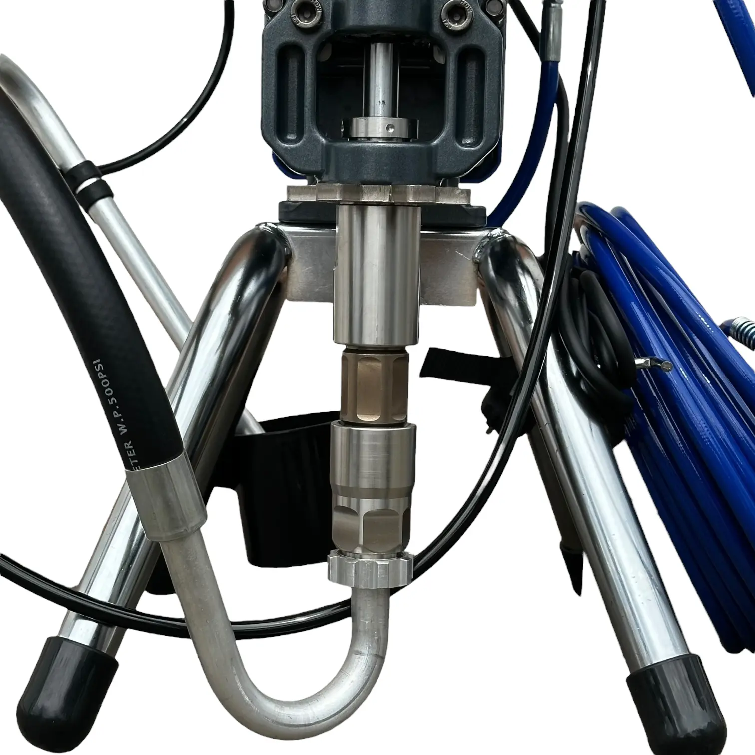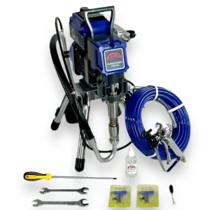 Поршневой безвоздушный покрасочный аппарат высокого давления с надежным индукционным двигателем. Подходит для распыления акриловых красок и алкидных смесей, грунтовок, олифы, вододисперсионных эмалей, эмульсий, морилки и клея.