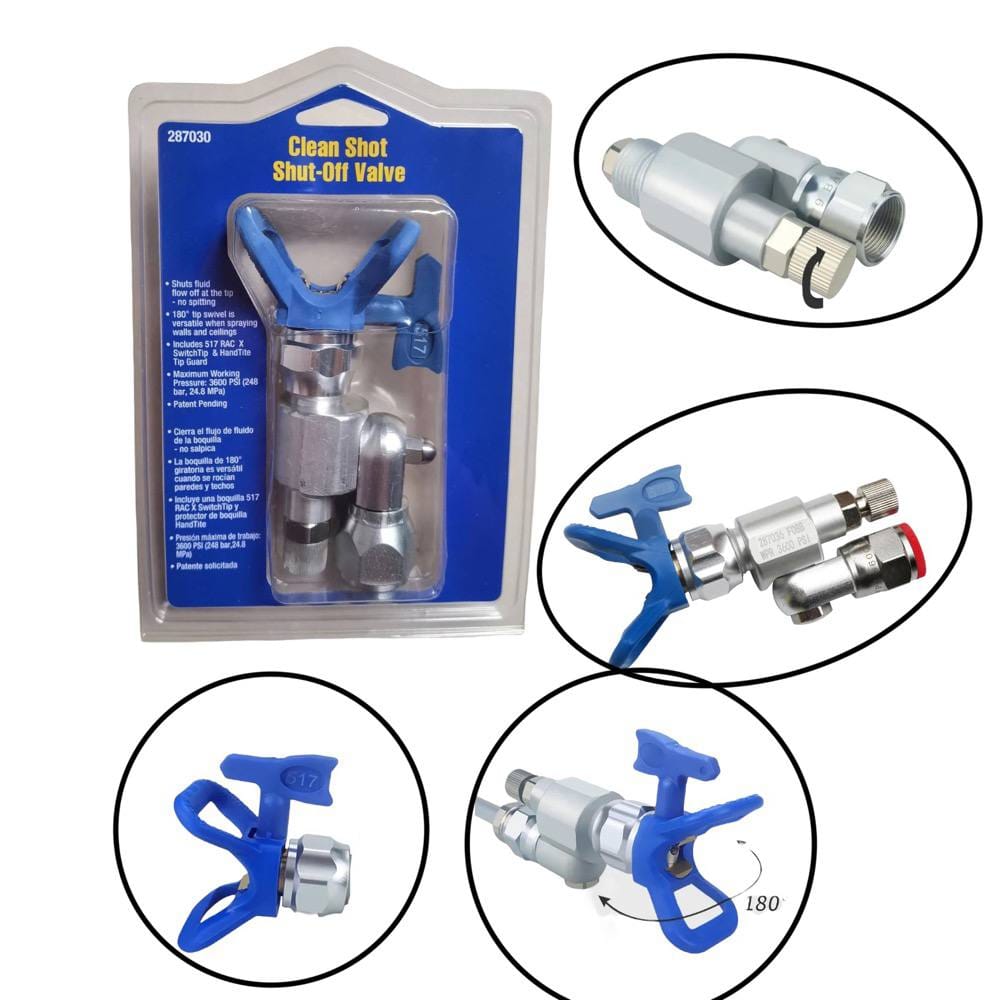 Насадка Clean-Shot (Клин-Шот) — это уникальный игольчатый клапан, который предотвращает разбрызгивание и обеспечивает чистый факел при безвоздушной окраске. Идеально подходит для использования с любыми удлинителями и обеспечивает удобство при покраске стен и потолков благодаря поворотному механизму на 180 градусов.