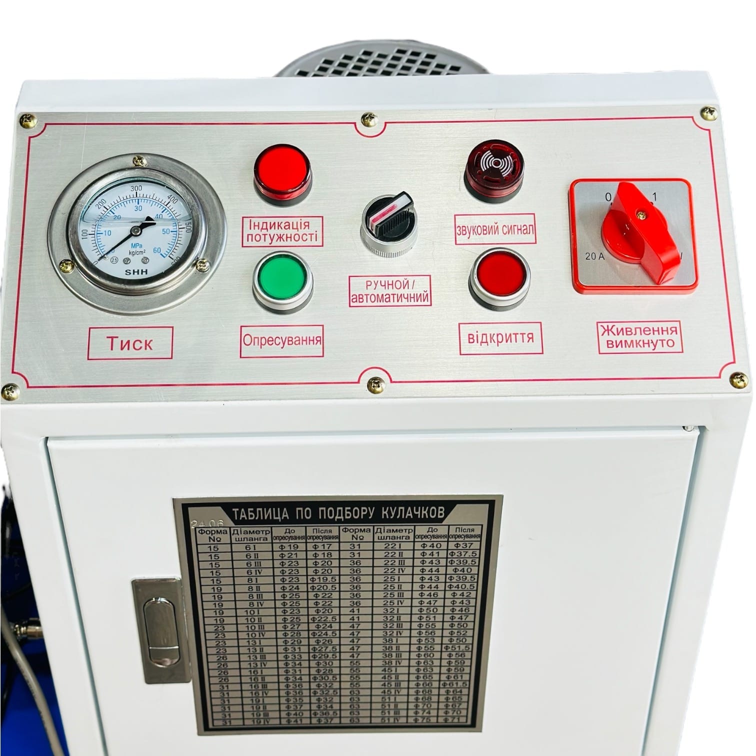 - Высокая мощность и производительность Мощность электропривода MK-3K составляет 3 кВт, что позволяет развивать силу обжима до 600 тонн (5300 кН). Это обеспечивает чрезвычайную надежность и точность при работе с металлическими трубами и шлангами высокого давления. Независимо от материала или формы труб, пресс обеспечивает равномерное и плотное обжимание, что критически важно для создания долговечных и прочных соединений в промышленных условиях.
