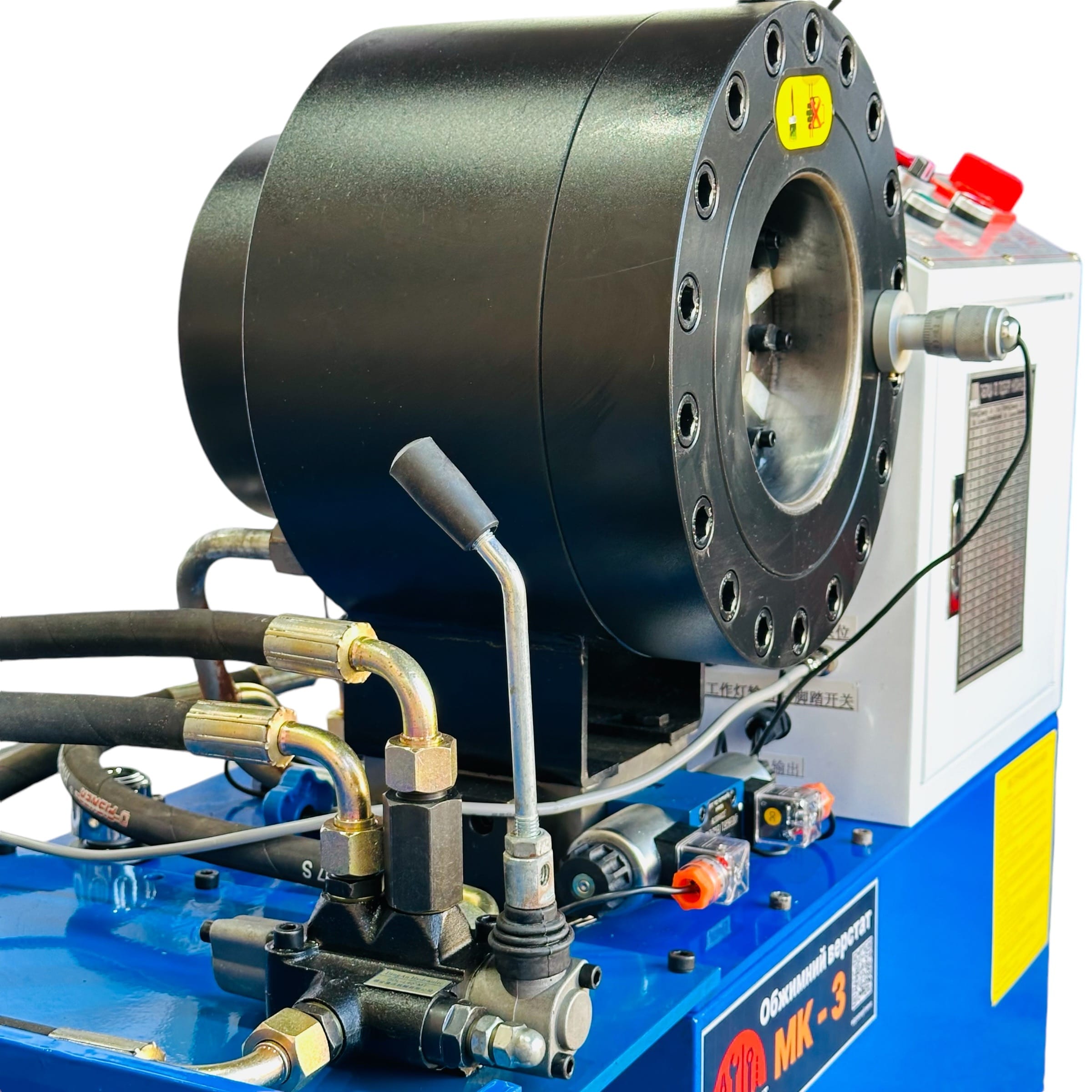 - Универсальность и многофункциональность Пресс MK-3K работает с разными типами труб и шлангов высокого давления. Это позволяет использовать его в широком спектре задач, в частности, в производстве гидравлических систем, каркасных конструкций и других металлических изделий. Станок способен обжимать не только круглые, но и квадратные трубы, что значительно расширяет его применение в архитектуре и строительстве. Универсальность этого оборудования делает его отличным выбором для предприятий разных отраслей.