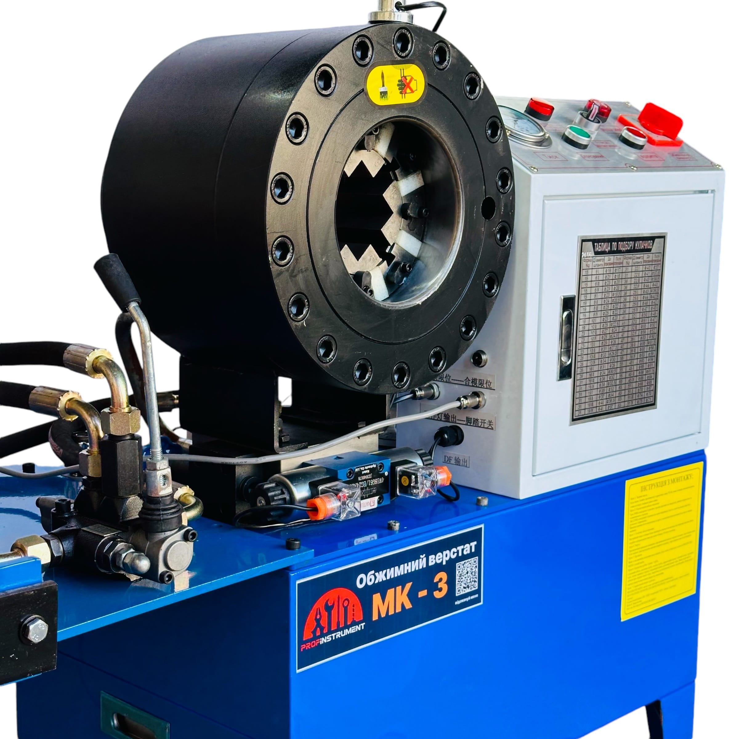 Обжимной пресс Profinstrument MK-3K – это профессиональный станок, разработанный для обжима труб разных форм и диаметров, в том числе квадратных и круглых, а также рукавов высокого давления (РВД).