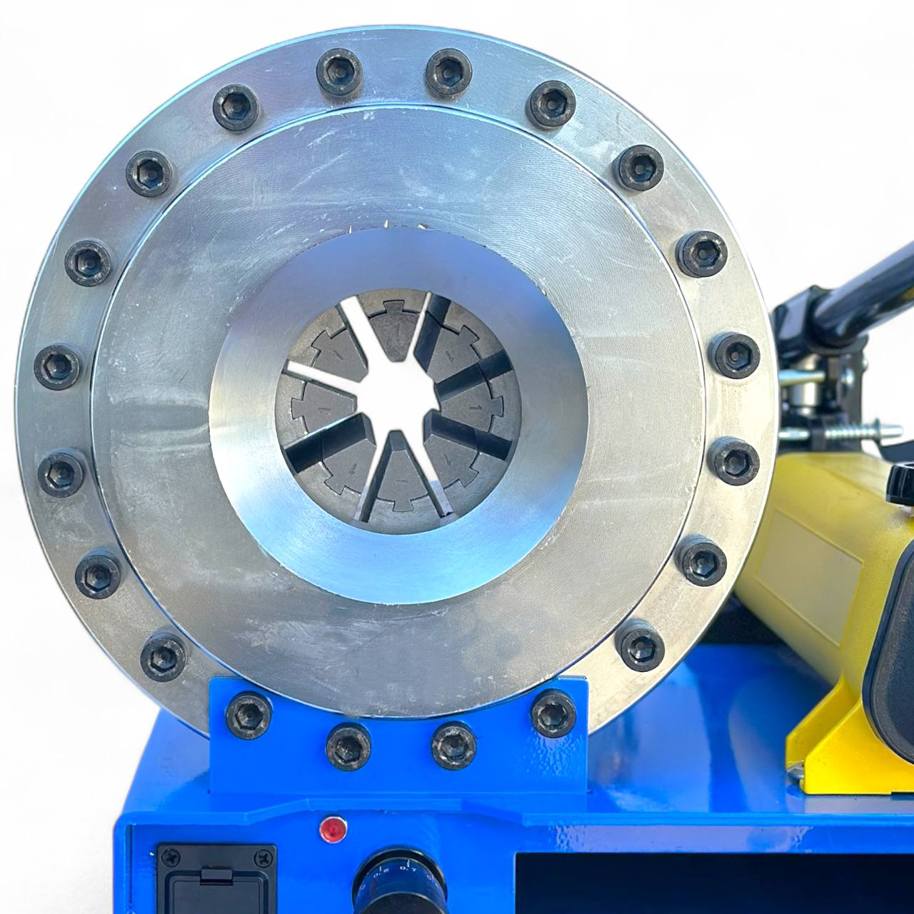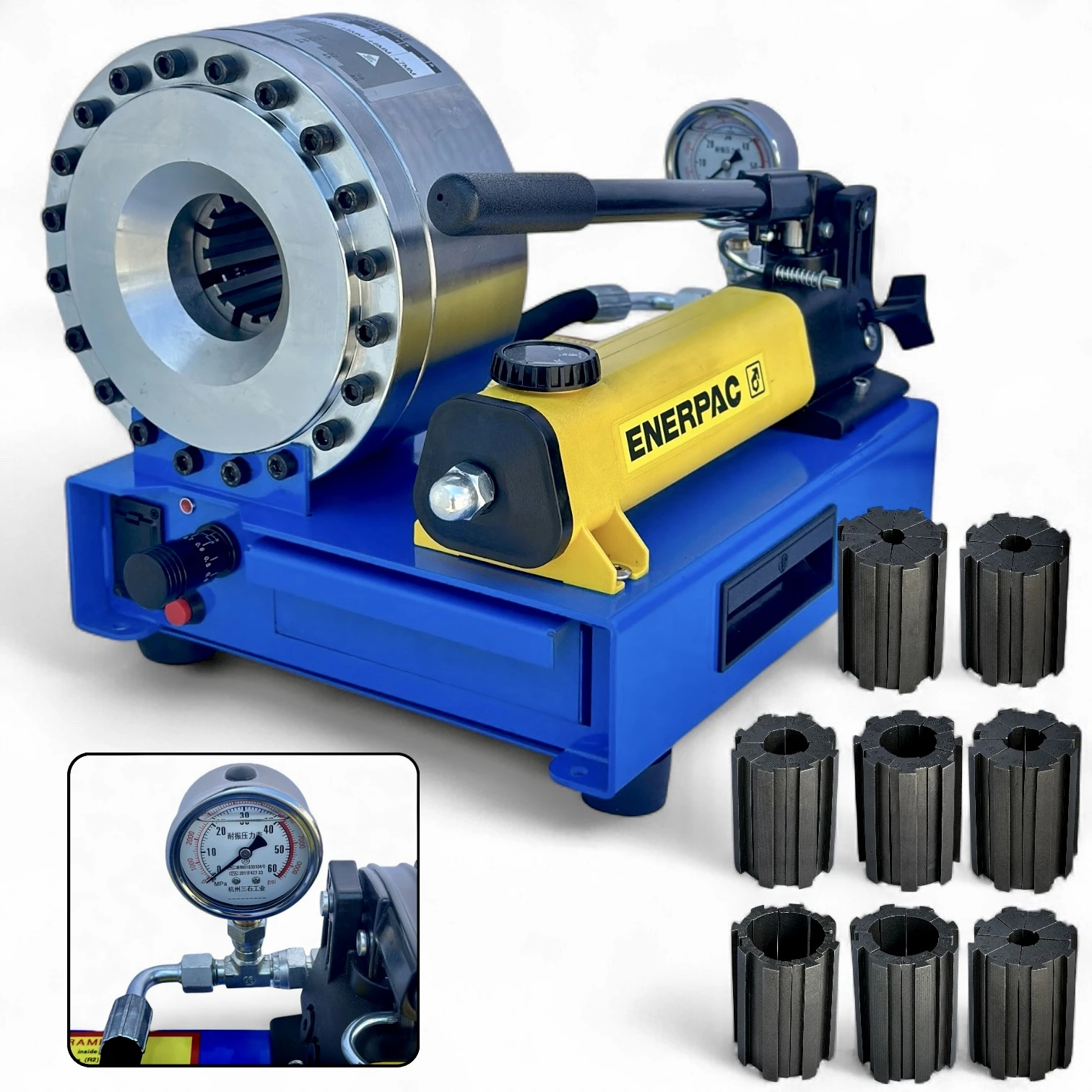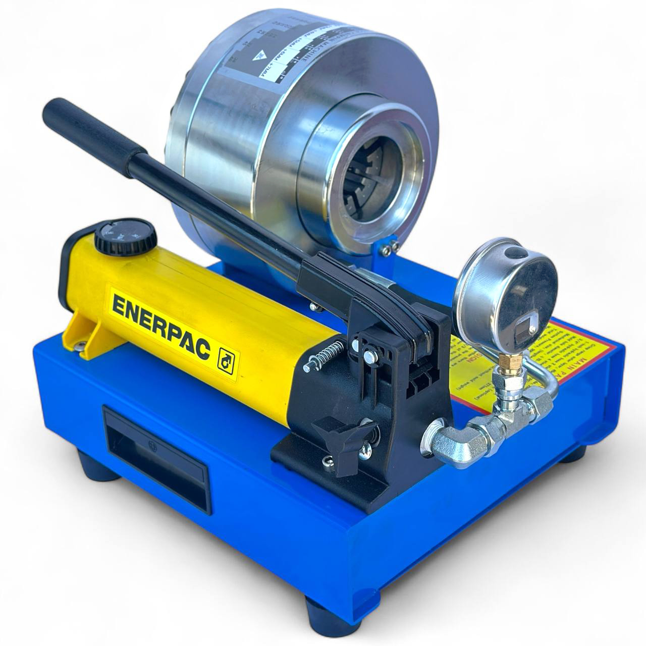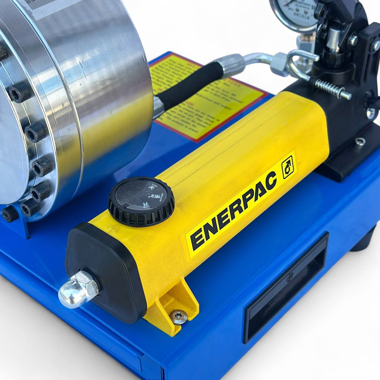 - Гидравлический обжимной станок ENERPAC — предназначен для обжима гидравлических шлангов высокого давления с использованием сменных кулачков разного диаметра.