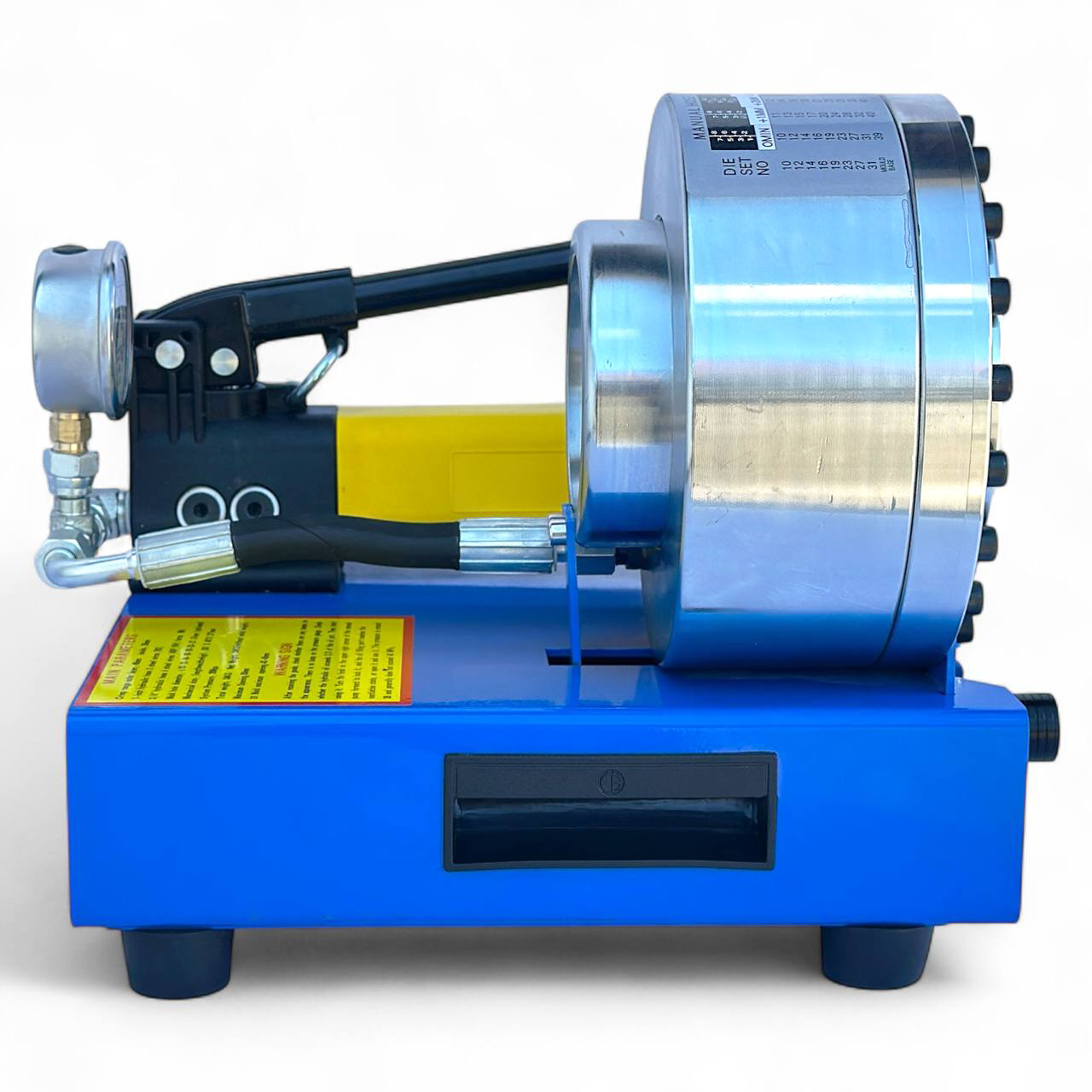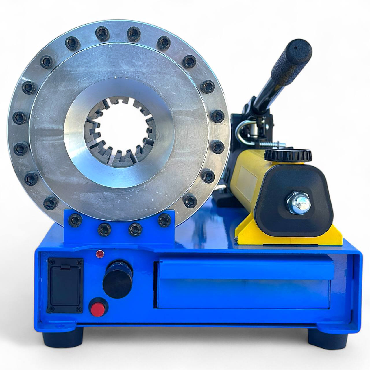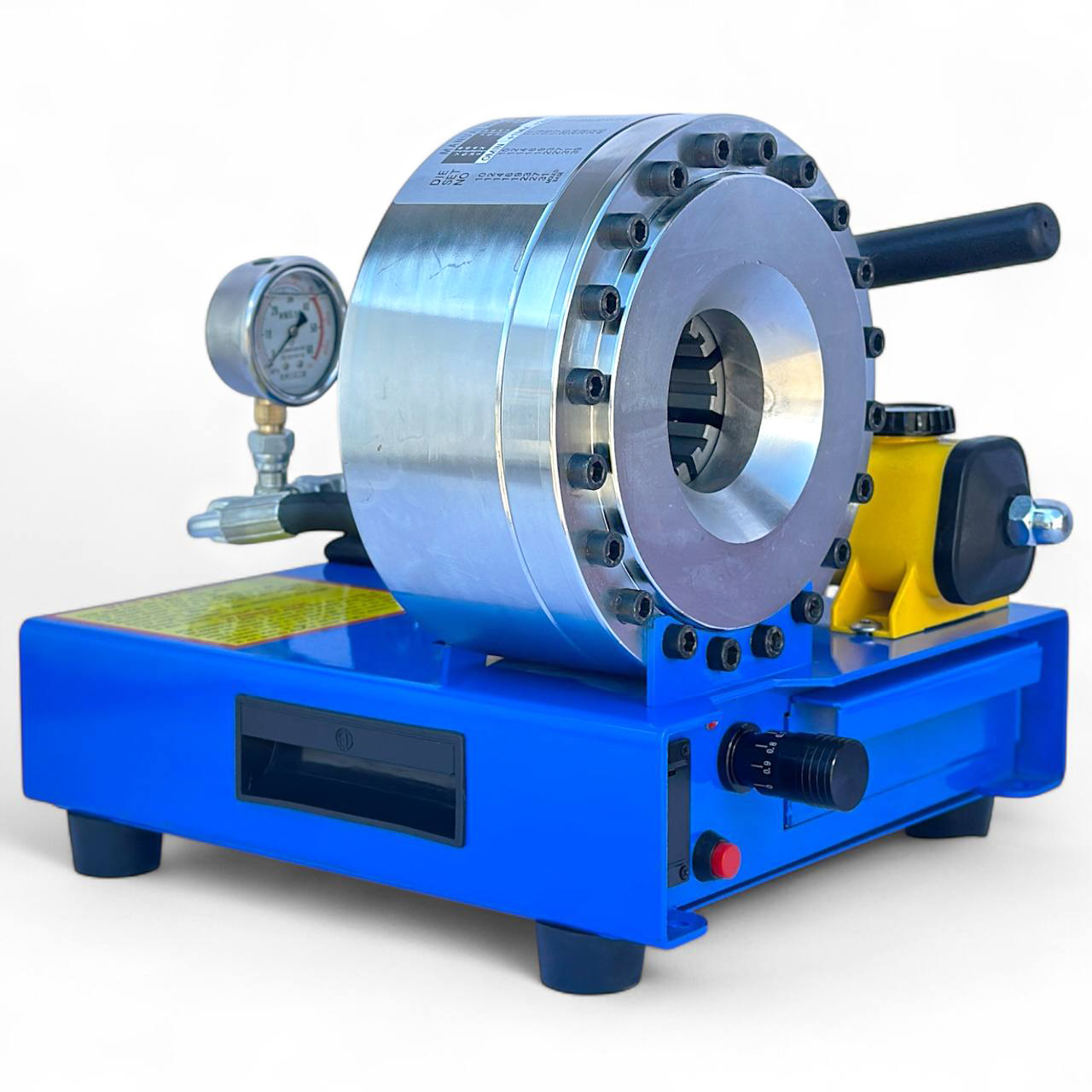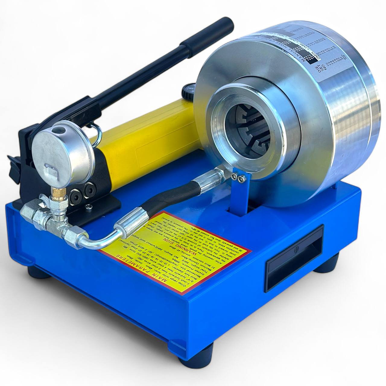 Станок для обжима гидравлических шлангов – это надежное профессиональное оборудование, предназначенное для качественной обработки и герметизации шланговых соединений разного диаметра. Благодаря двухступенчатому гидравлическому насосу с рабочим давлением до 8000 psi этот станок обеспечивает мощный и равномерный обжим фитингов в диапазоне 10–34 мм, что гарантирует максимальную прочность и долговечность соединений.