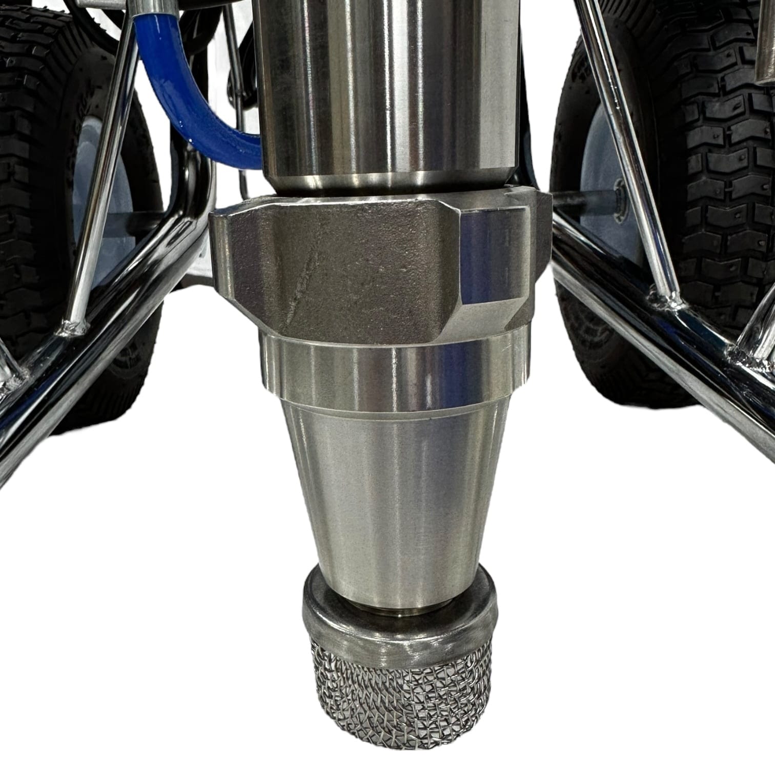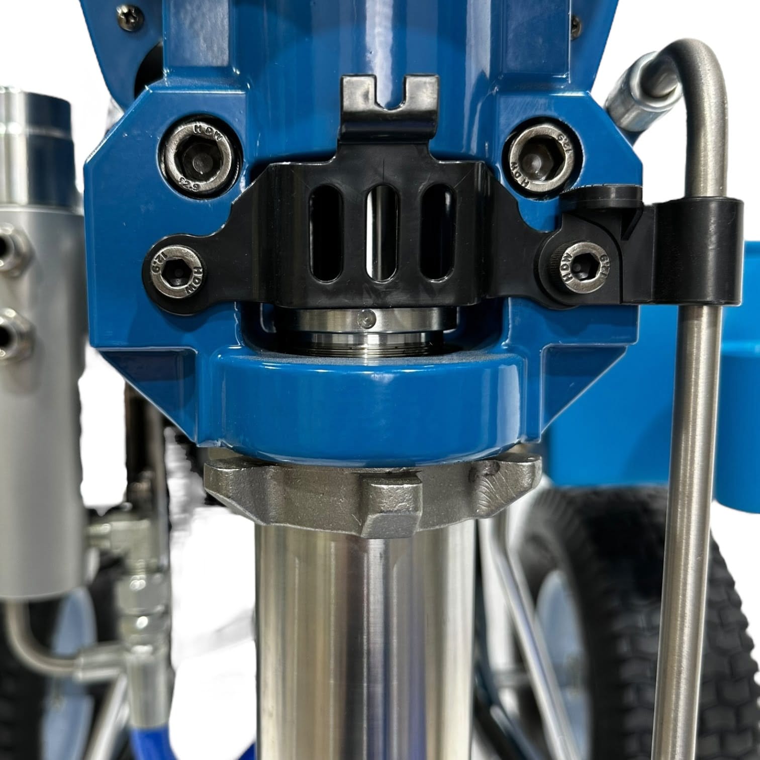 В аппарате применена поршневая конструкция насоса, позволяющая генерировать максимальную мощность всасывания, являющуюся решающим фактором при окрашивании высоковязкими материалами.