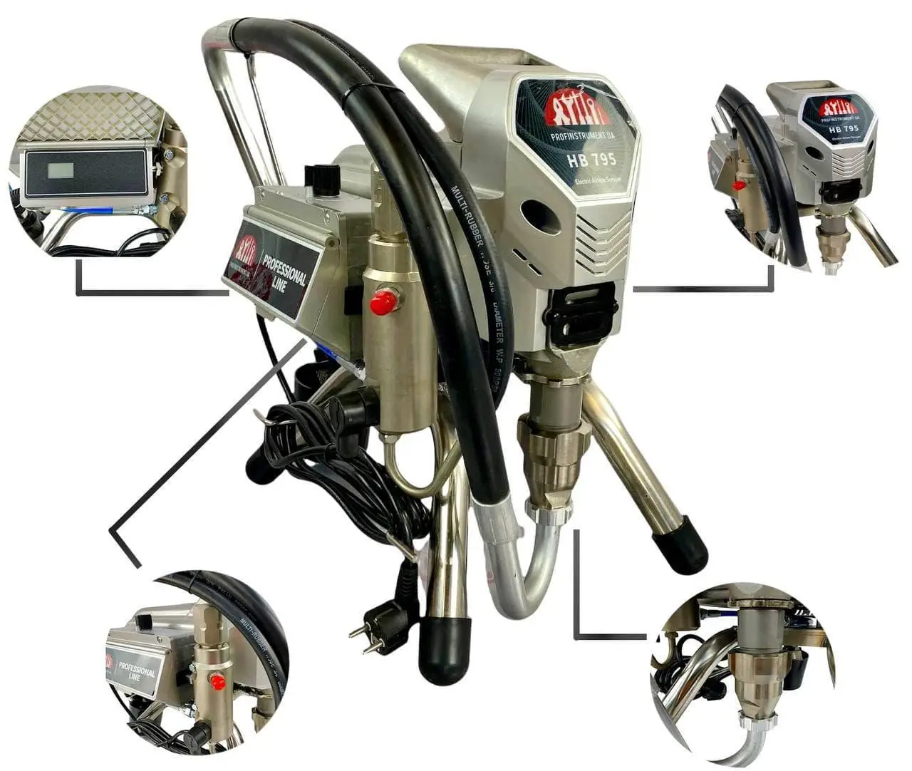 Безвоздушный покрасочный аппарат HB-795 /EP 310 (HVBAN) — это идеальный безвоздушный распылитель для внутренних и наружных работ, для распыления водоэмульсионных и масляных красок низкой, средней и повышенной средней вязкости, лакокрасочных материалов на основе растворителей, лаков, эмалей. и полиуретановых составов, а также потянет клей и финишную шпатлевку на основе акрилового латекса для внутренних работ.