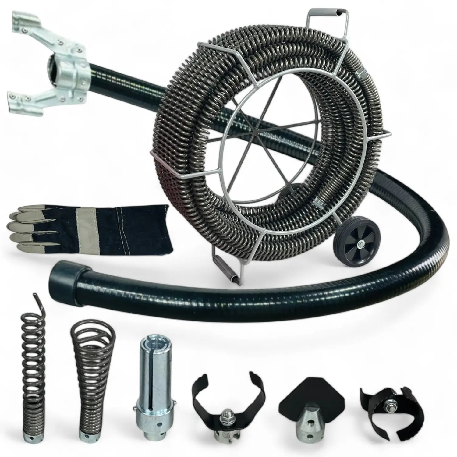 Универсальная машина с секционной спиралью для прочистки внутридомовых канализационных сетей и других трубопроводов диаметром от 110 мм до 250 мм.