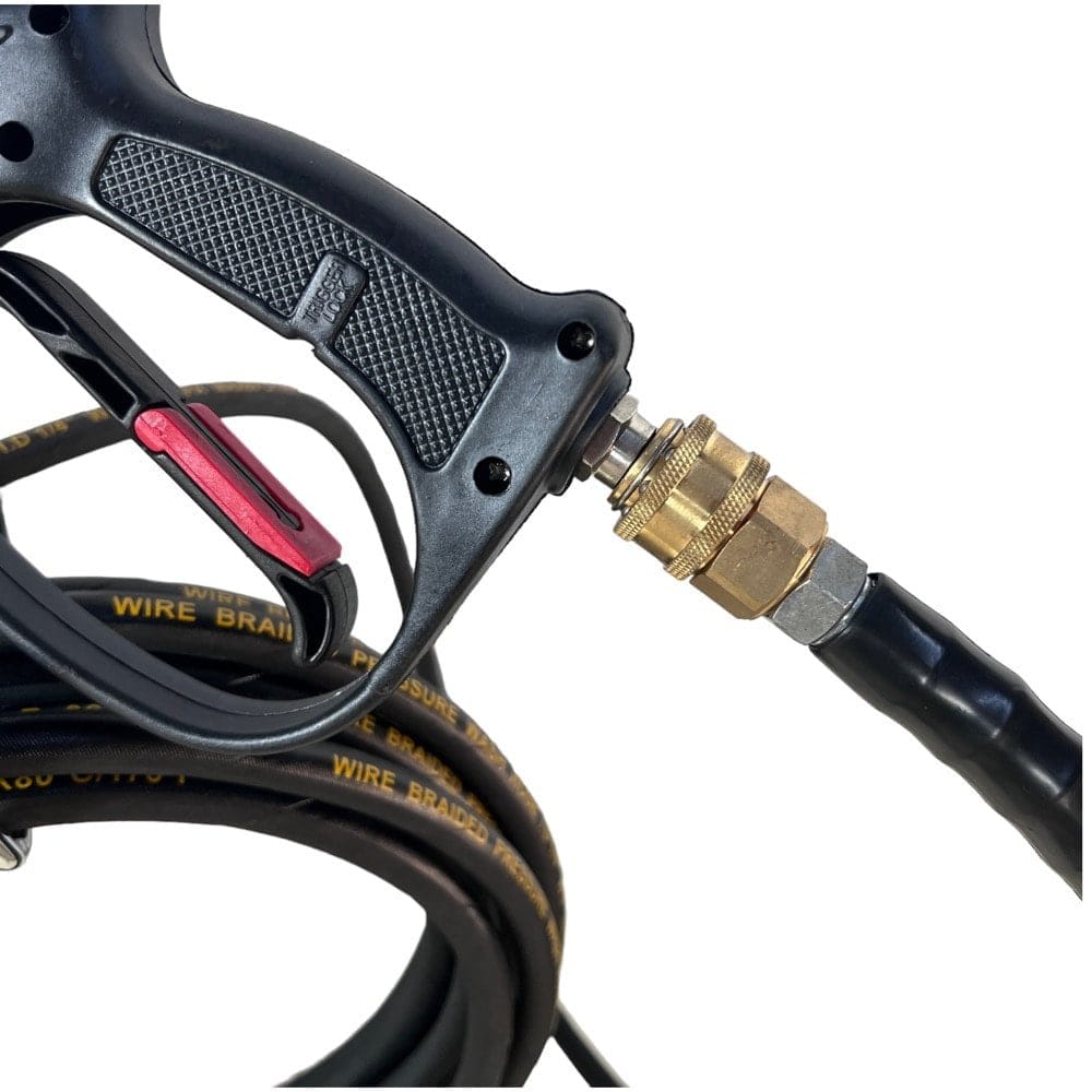 Убедитесь, что шланг высокого давления подсоединен к распылительному пистолету и аппарату.