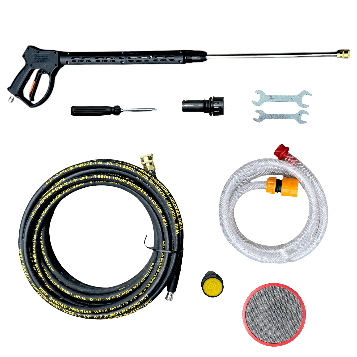 Подключение :Убедитесь, что шланг высокого давления подключен к распылительной рукоятке и аппарату.