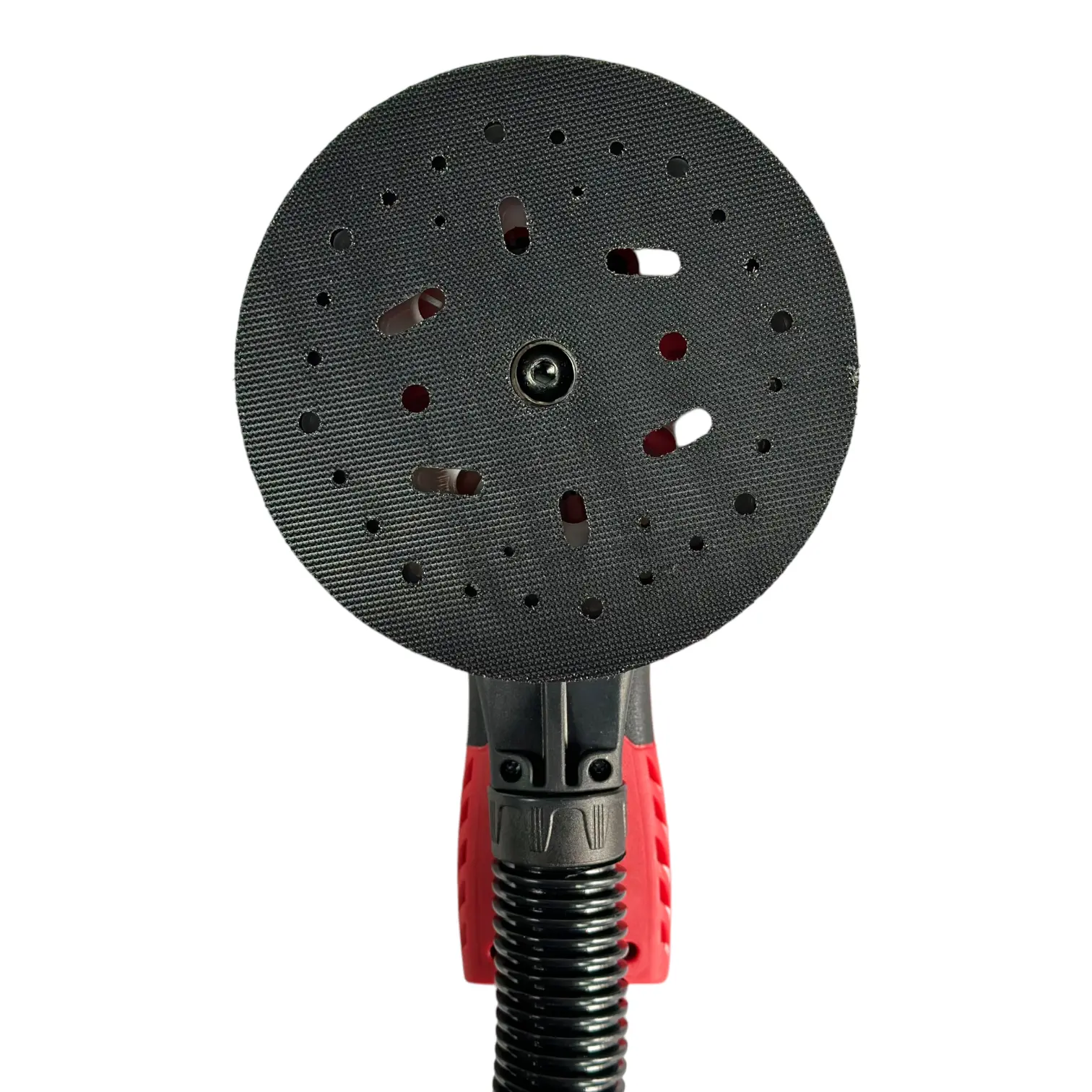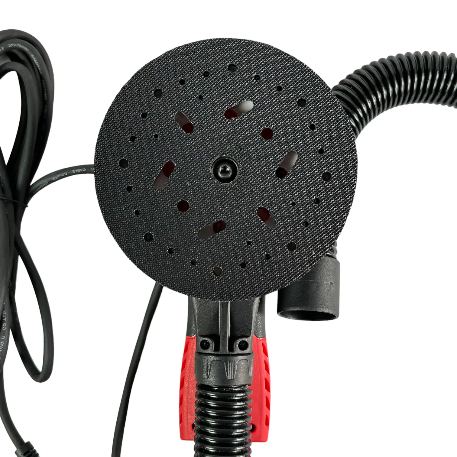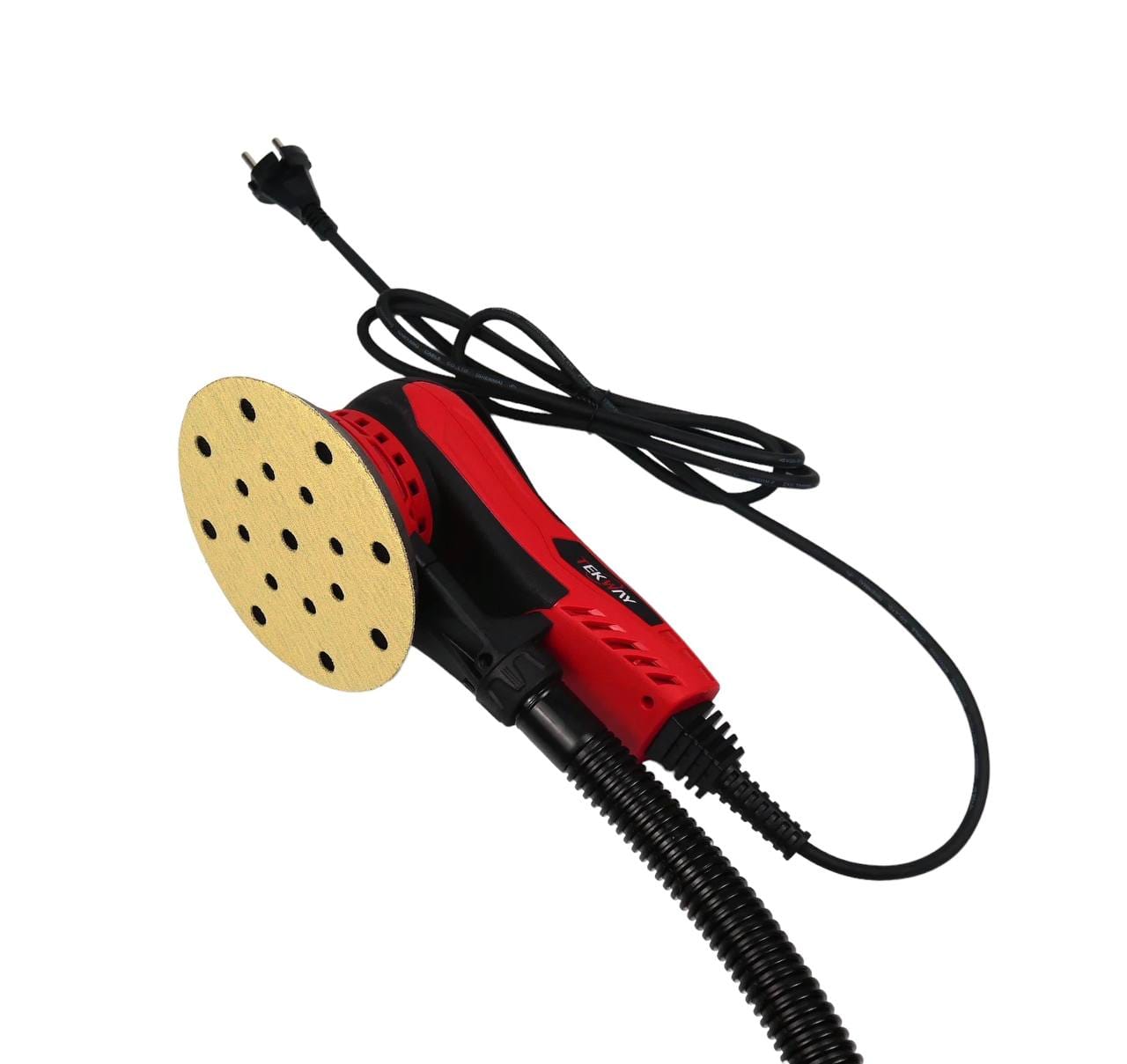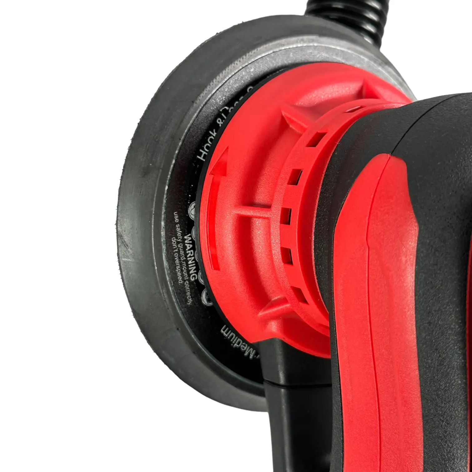 Кроме того, шлифмашина имеет эргономичную рукоятку, позволяющую работать в любом положении, а регулировка скорости вращения осуществляется с помощью двух кнопок, расположенных на корпусе аппарата. Для эффективного удаления пыли подошва имеет отверстия, а к самой шлифовальной машине может быть подключен пылесос.