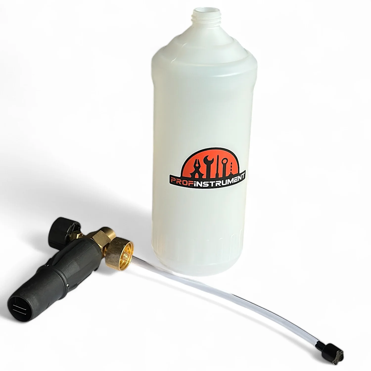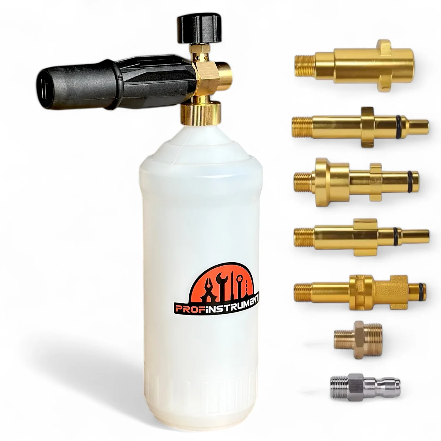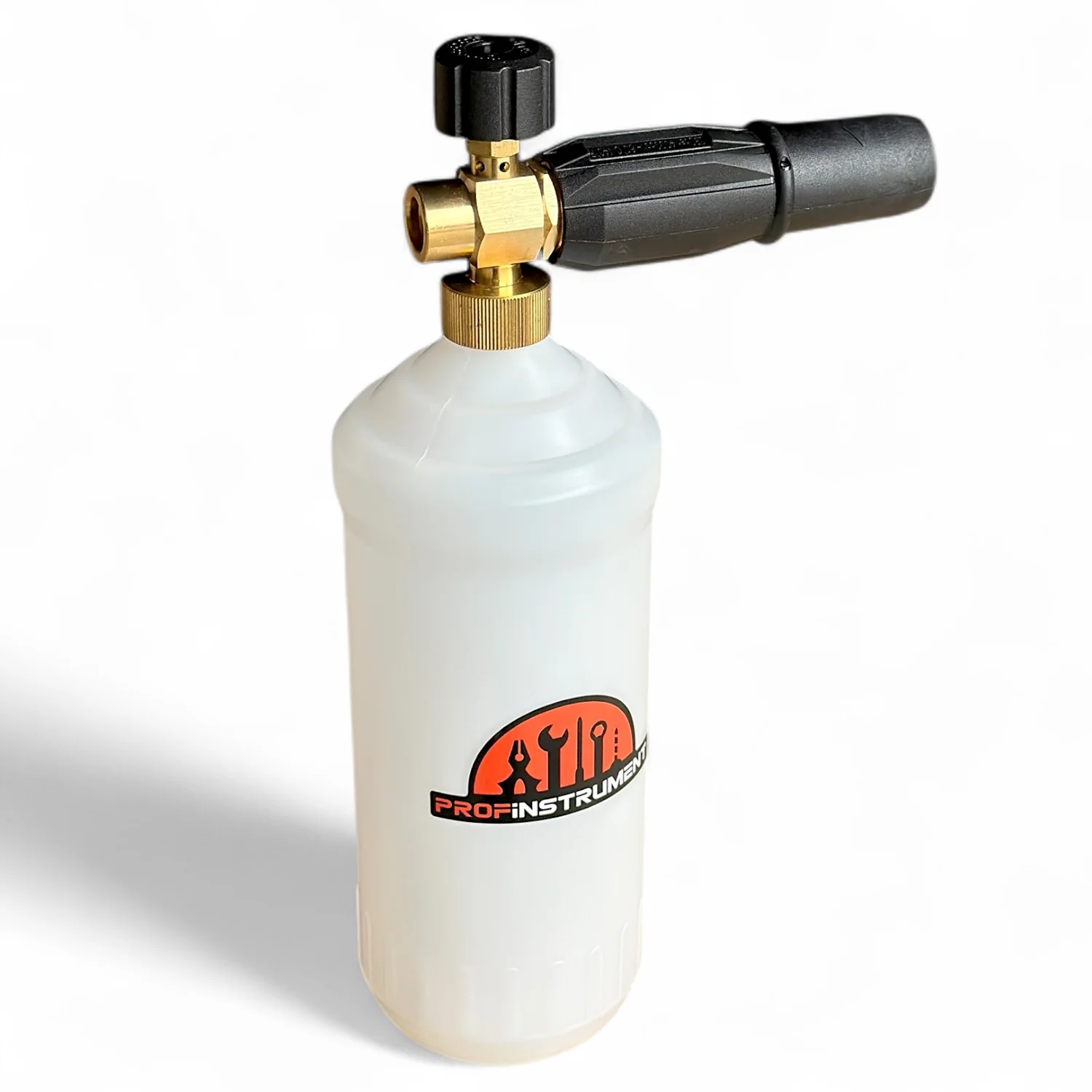 Пенная насадка Profinstrument Q4 специально разработана для создания суперплотной пены, смешивая моющее средство и воду с помощью мойки высокого давления. Благодаря нашему собственному дизайну – основа из металла, она создает и распиливает невероятно толстую и плотную пену на ваш автомобиль, мотоцикл, пол, тротуар, крышу или другие моющиеся предметы.