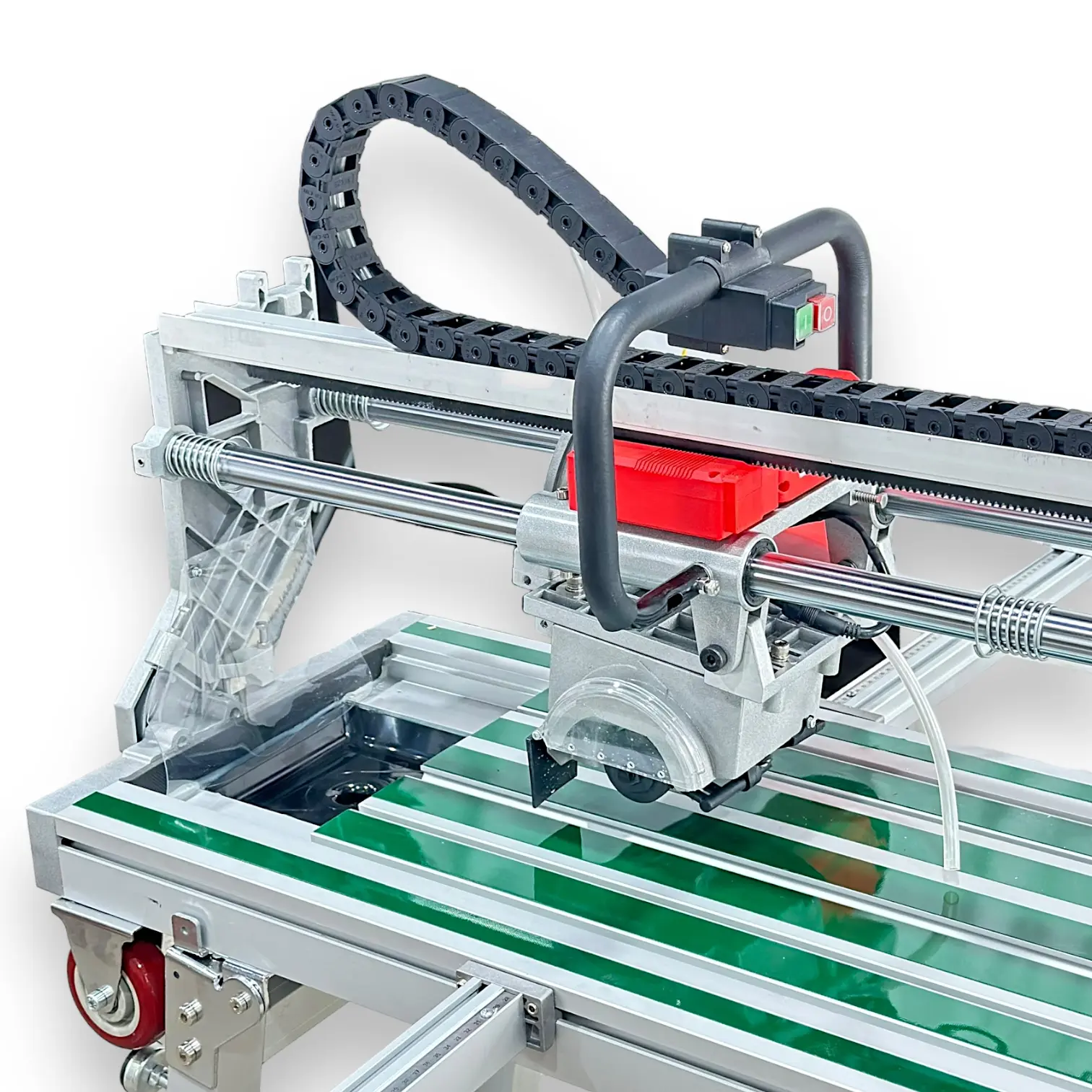 - Удобство транспортировки: Благодаря колесикам плиткорез легко перемещать с места на место. Сложная конструкция обеспечивает простоту транспортировки и хранения.