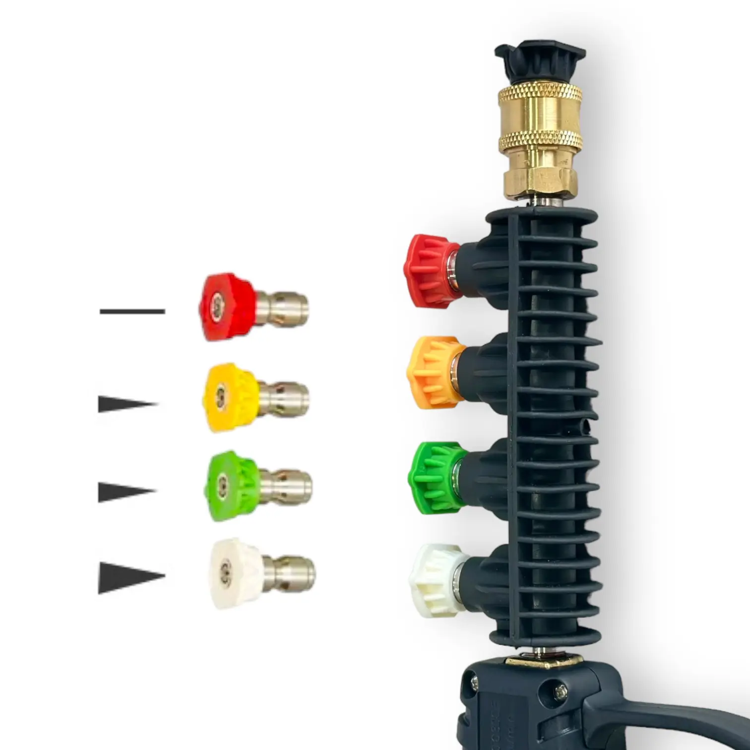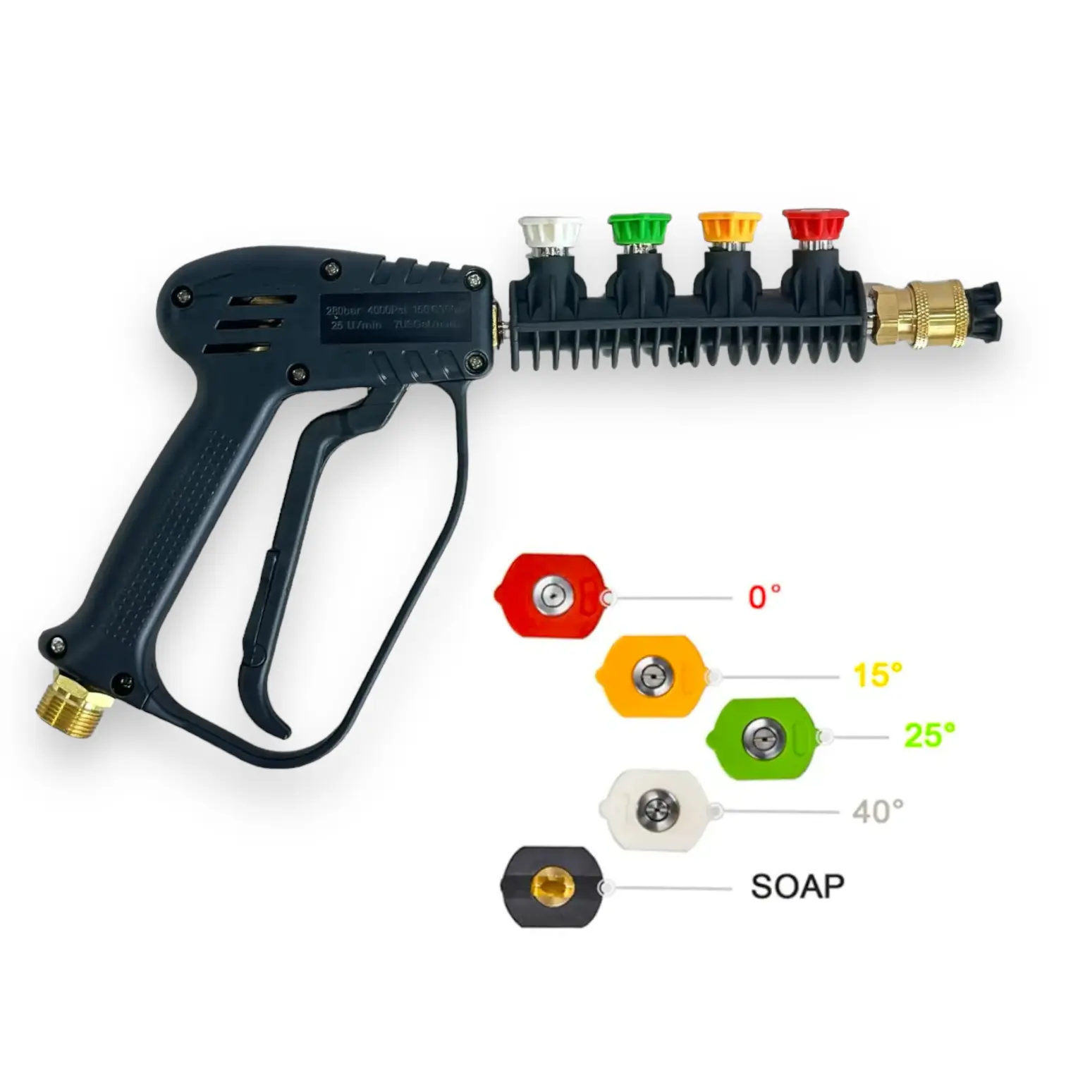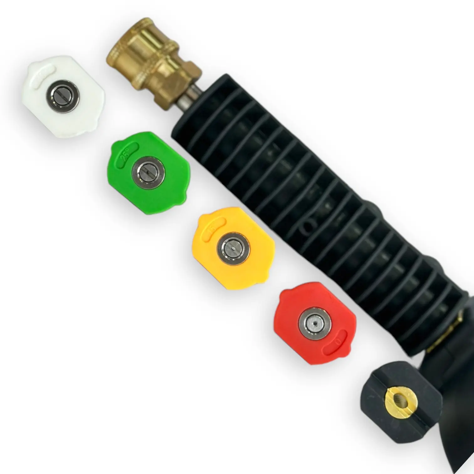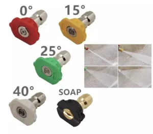 - Комплектация: Включает 5 насадок с разными валками распыления воды под высоким давлением.