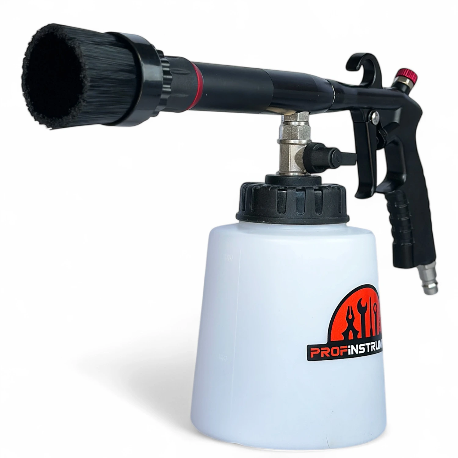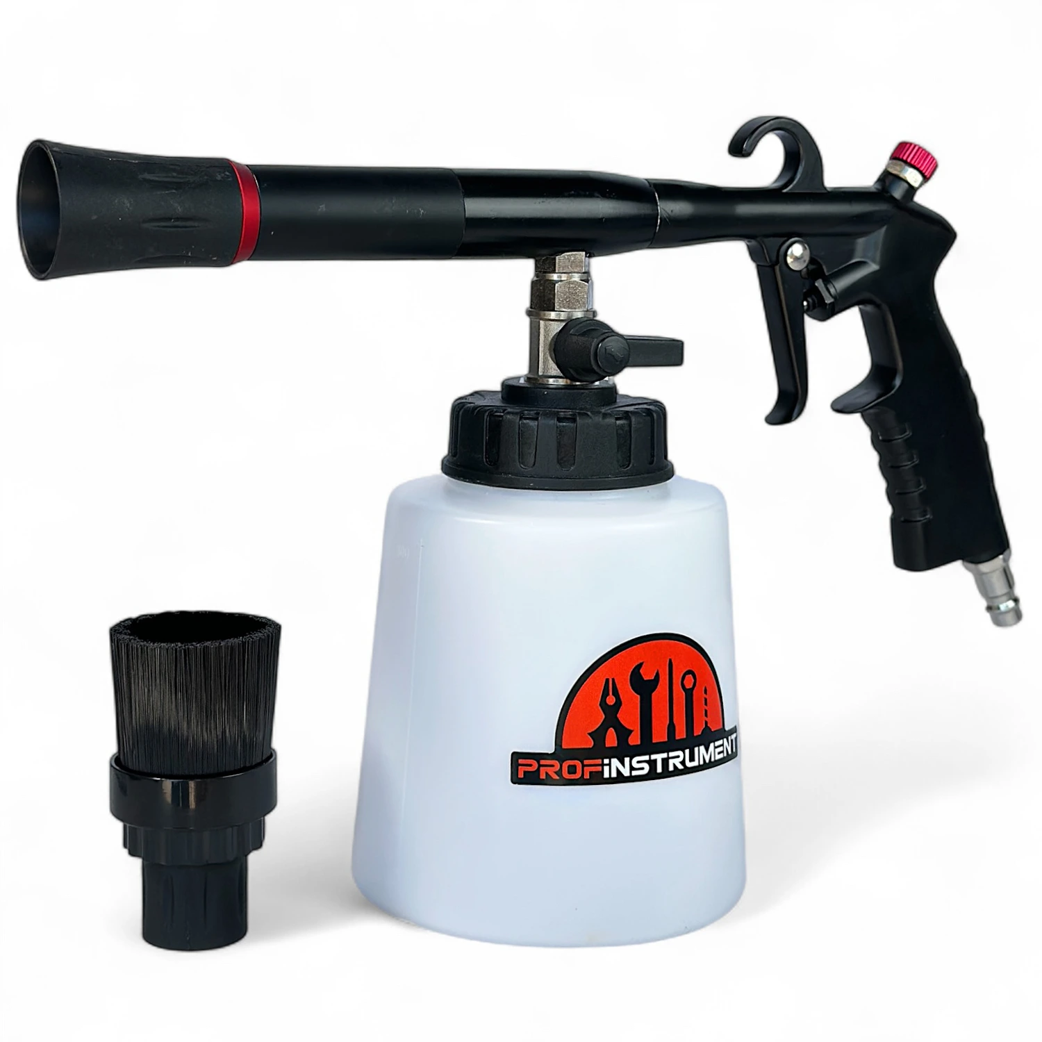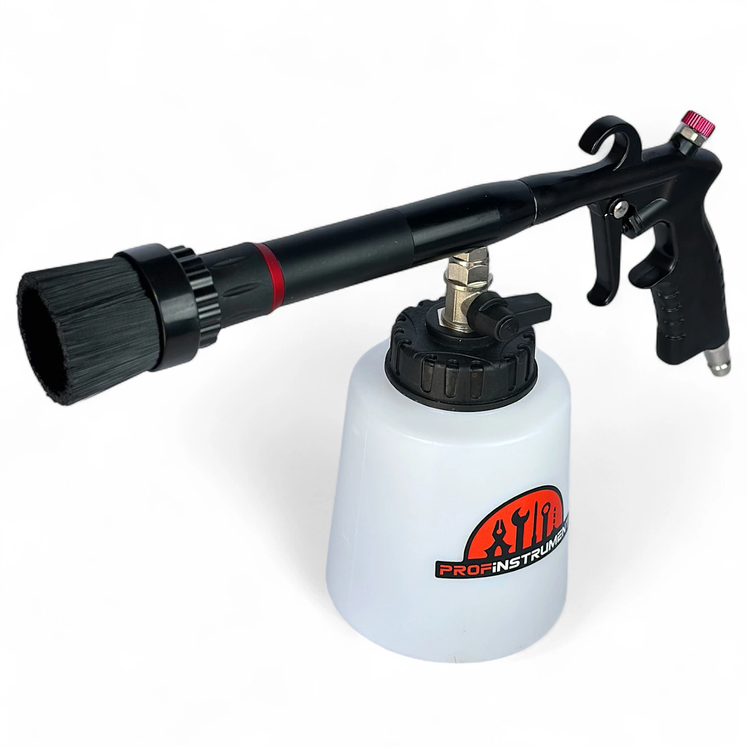 Tornador Marflo Black пневмопистолет для химчистки с подшипником оснащен жесткой трубкой малого диаметра, вращающейся с помощью сжатого воздуха, через которую распыляется моющая жидкость, позволяющая быстро удалять загрязнения различного происхождения из ткани, велюра, винила и пластика. Идеально подходит для очистки обивки сидений и потолков автомобиля. Позволяет выполнять работы по экспресс химчистке на автомойках и автосервисах.