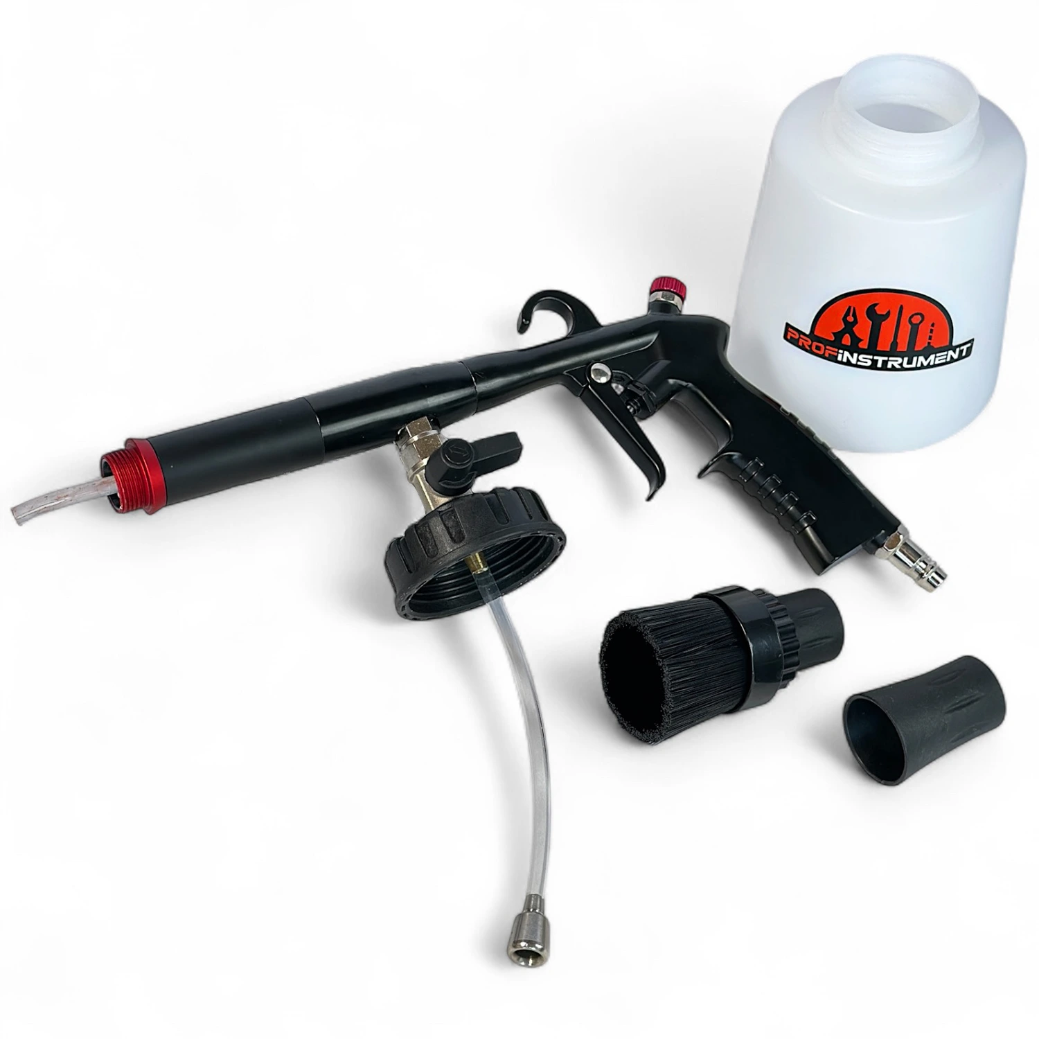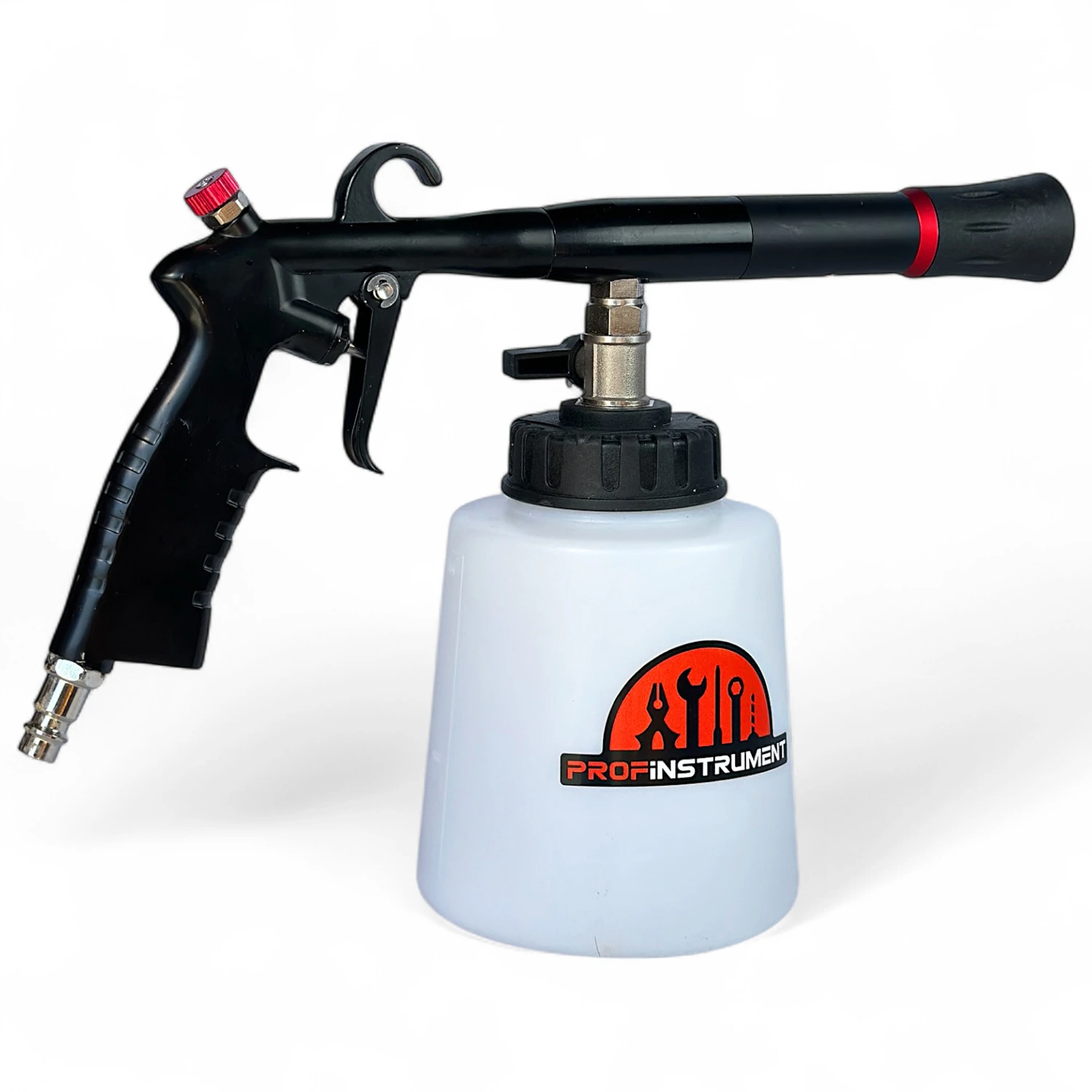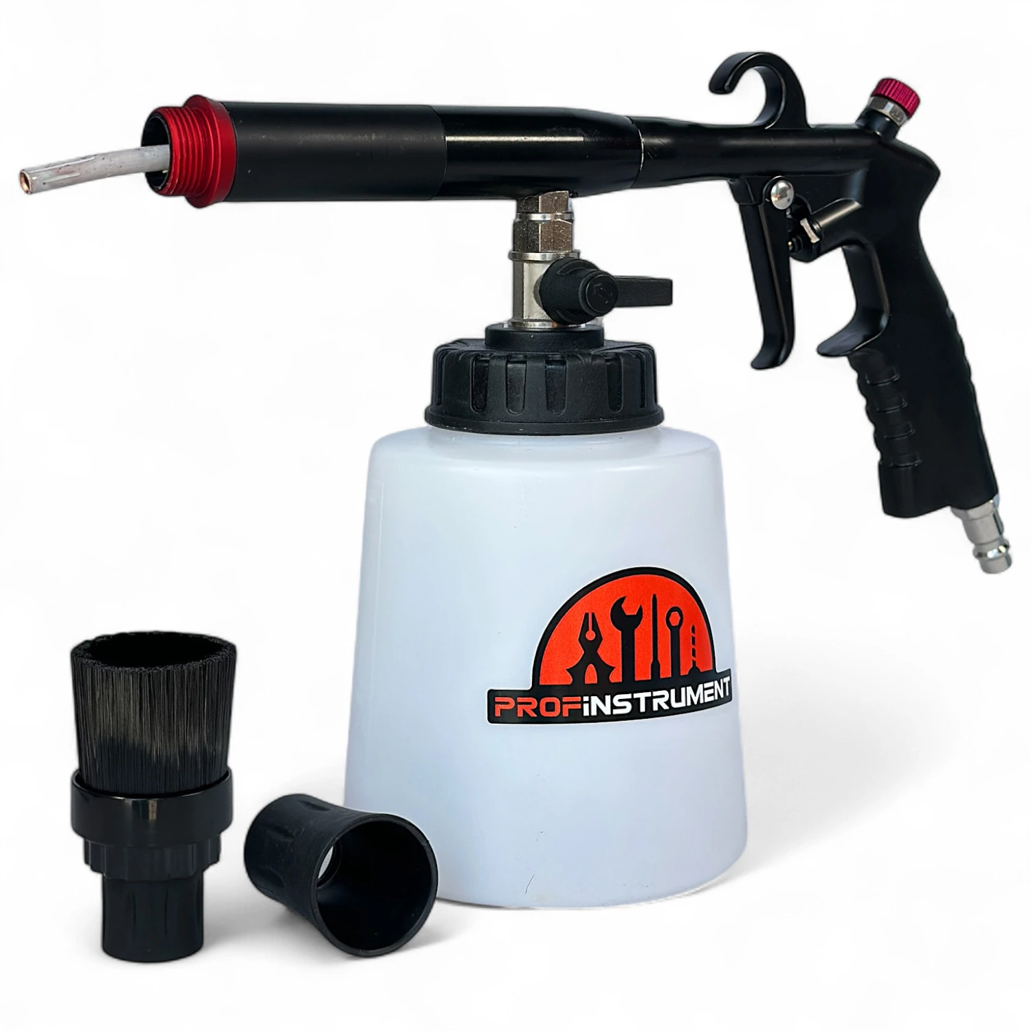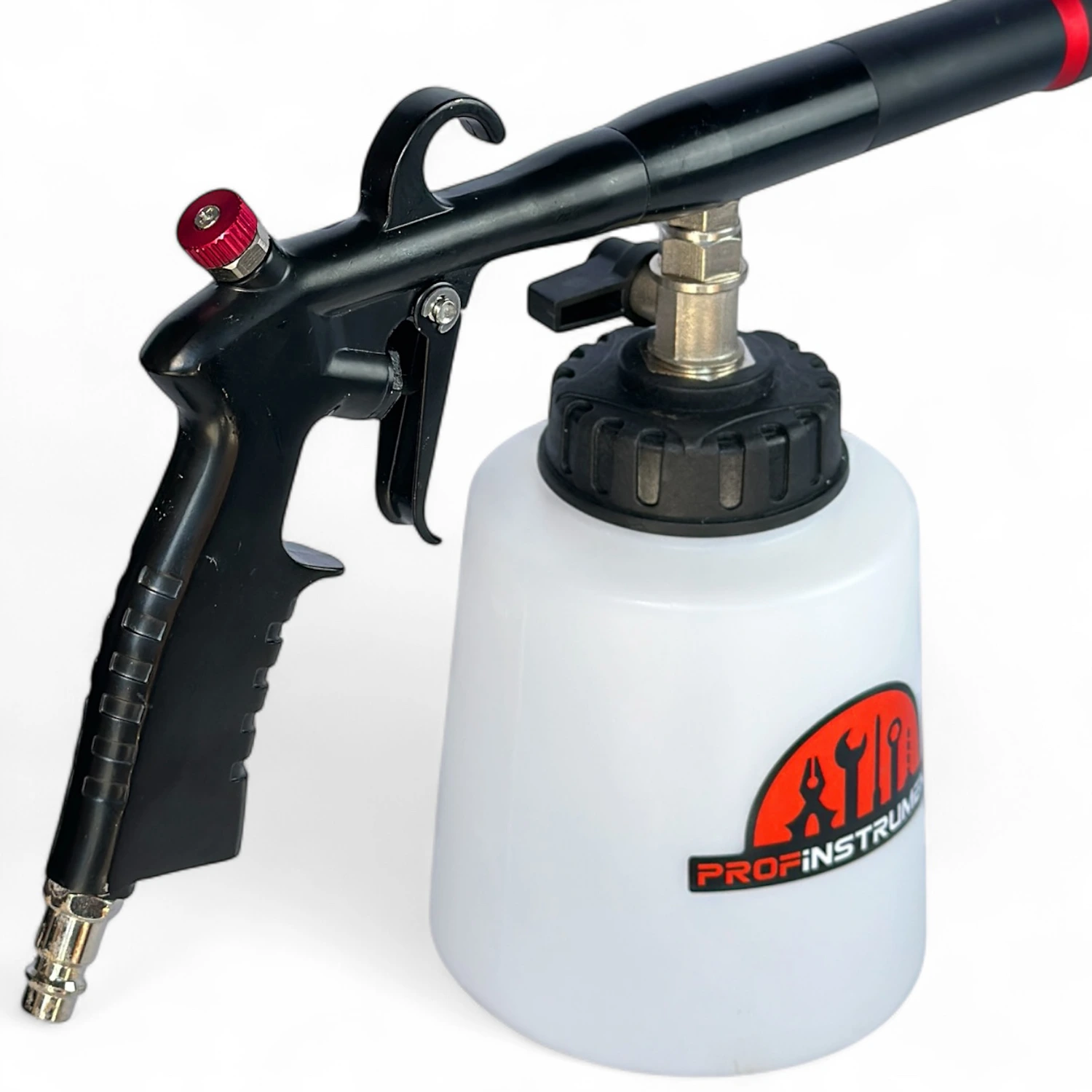 Tornador Marflo Black пневмопистолет для химчистки с подшипником оснащен жесткой трубкой малого диаметра, вращающейся с помощью сжатого воздуха, через которую распыляется моющая жидкость, позволяющая быстро удалять загрязнения различного происхождения из ткани, велюра, винила и пластика. Идеально подходит для очистки обивки сидений и потолков автомобиля. Позволяет выполнять работы по экспресс химчистке на автомойках и автосервисах.