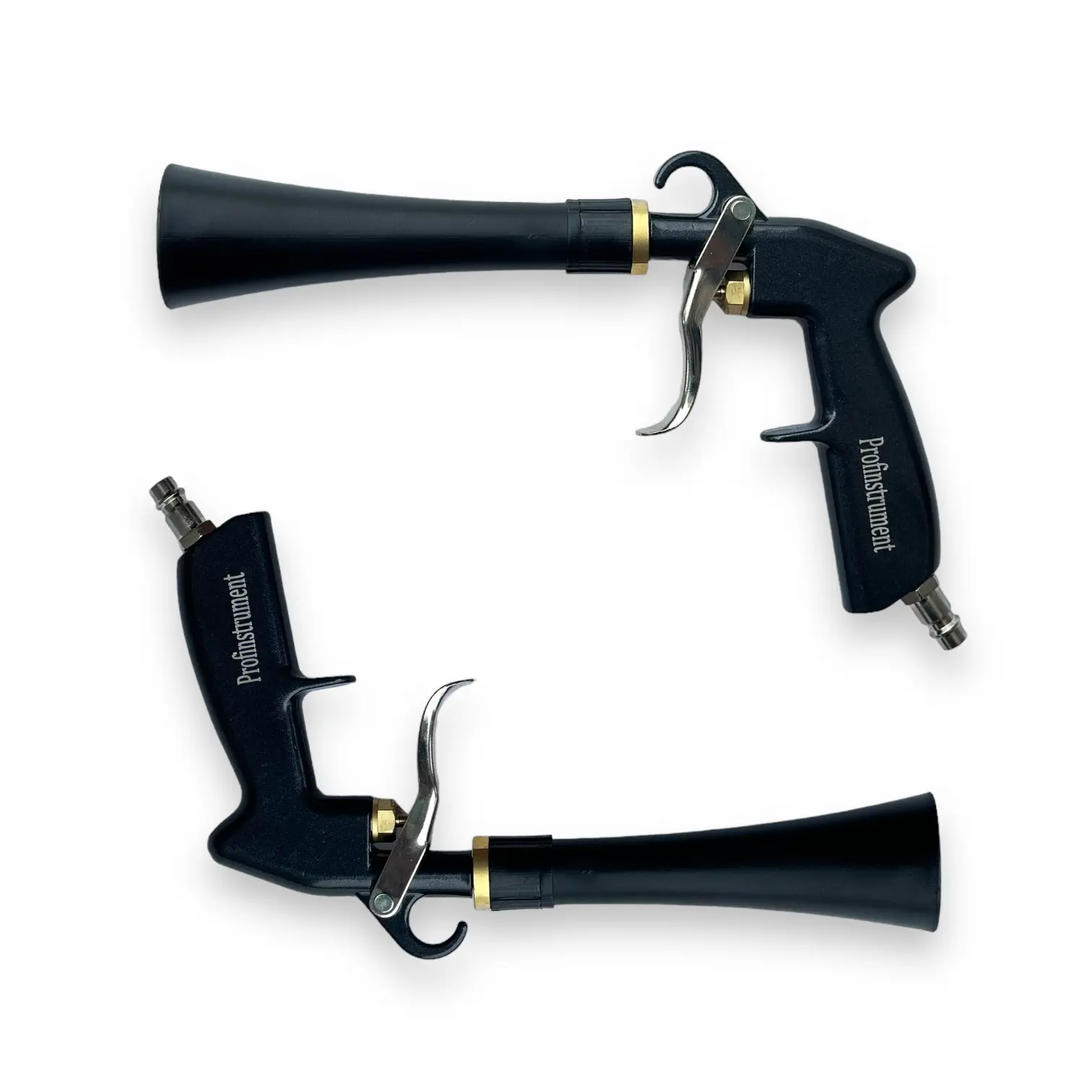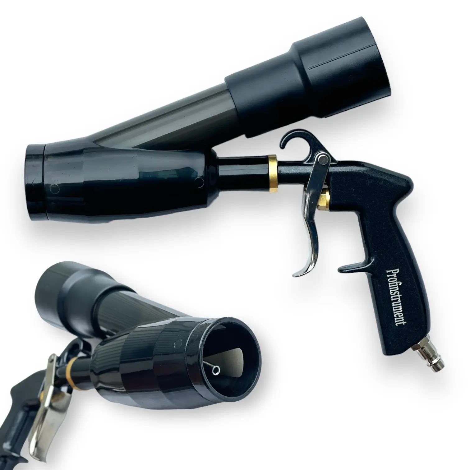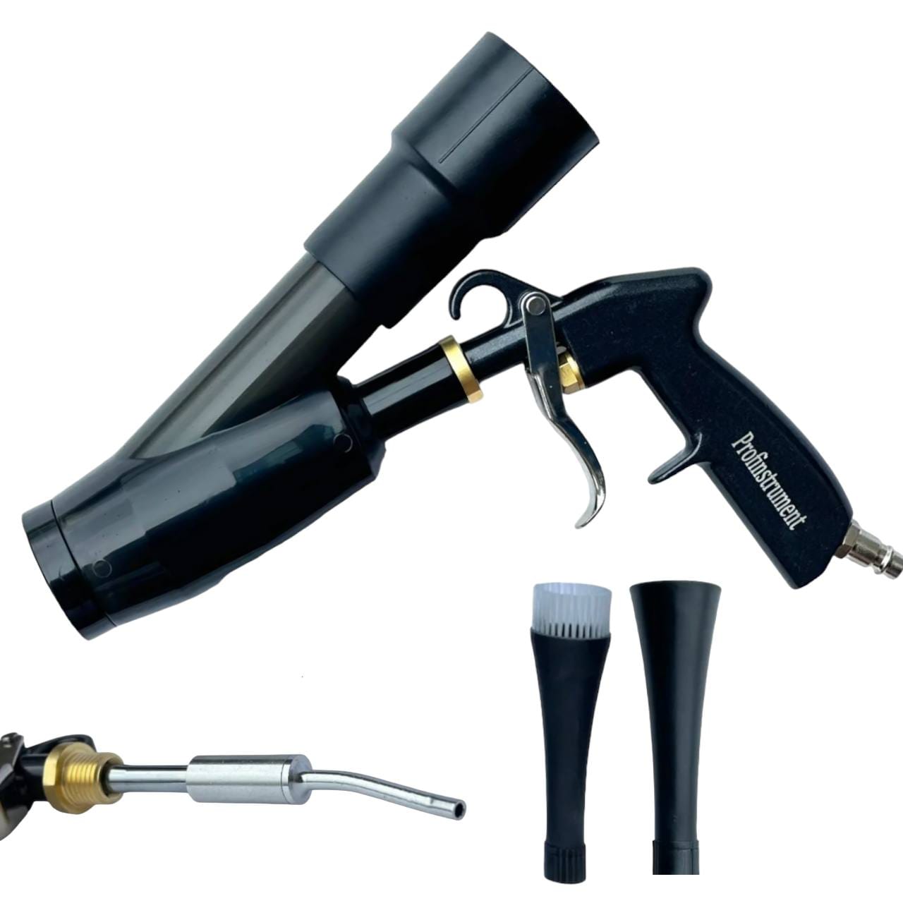 Профессиональный выбивной аэропистолет Profinstrument M-18 Tornado с подключением к пылесосу – идеальный инструмент для глубокой очистки автомобильных поверхностей. Он эффективно удаляет грязь и песок из ковровых покрытий, пластика, кожи, обивки, двигателей, швов кузова и откидных крыш.
